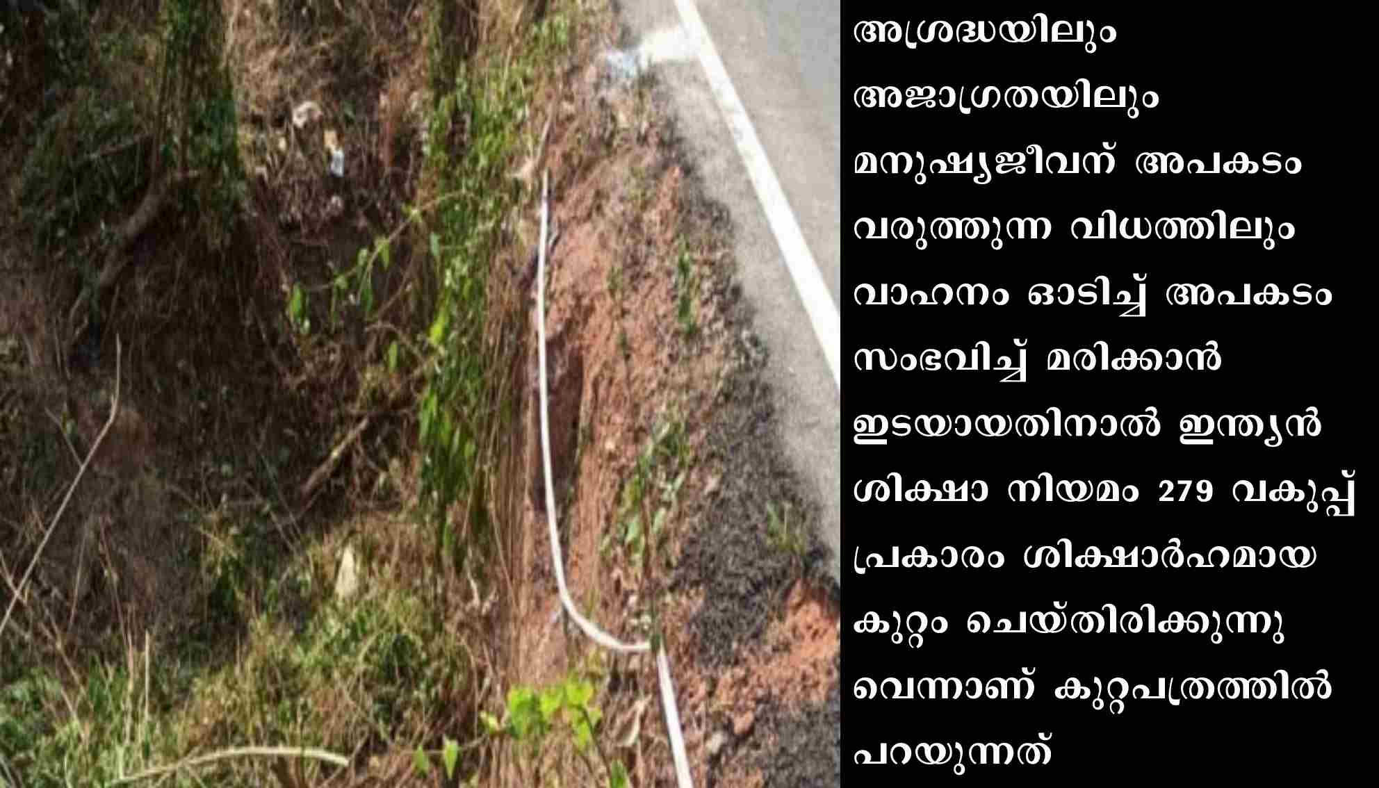 മയ്യിൽ: കൈവരിയില്ലാത്ത റോഡിലൂടെ സ്കൂട്ടറിൽ സഞ്ചരിക്കവേ കനാലിൽ വീണു മരിച്ച യാത്രക്കാരനെതിരെ കോടതിയിൽ കുറ്റപത്രം സമർപ്പിച്ച് മയ്യിൽ പൊലീസ്. അശ്രദ്ധയിലും അജാഗ്രതയിലും മനുഷ്യജീവന് അപകടം വരുത്തുന്ന വിധത്തിലും വാഹനം ഓടിച്ച് അപകടം സംഭവിച്ച് മരിക്കാൻ ഇടയായതിനാൽ ഇന്ത്യൻ ശിക്ഷാ നിയമം 279 വകുപ്പ് പ്രകാരം ശിക്ഷാർഹമായ കുറ്റം ചെയ്തിരിക്കുന്നുവെന്നാണ് കുറ്റപത്രത്തിൽ പറയുന്നത്.