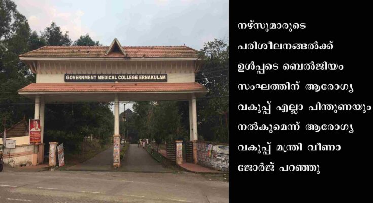 എറണാകുളം മെഡിക്കല് കോളജ് ആശുപത്രി സന്ദര്ശന വേളയിലാണ് ബെല്ജിയം സംഘം ആശുപത്രി സംവിധാനങ്ങള് വിലയിരുത്തിയത്. ആശുപത്രിയുടെം പാശ്ചത്തല സംവിധാനം,നഴ്സുമാരുടെ പരിശീലനം എന്നിവ ആശുപത്രി സൂപ്രണ്ട് ഡോ.ഗണേഷ് മോഹനുമായി സംഘം ചര്ച്ച ചെയ്തു. ഈ റിക്രൂ്ട്ട്മെന്റിന്റെ ഭാഗമായി നഴ്സ്മാര്ക്ക് 6 മാസത്തേക്ക് ഡച്ചുഭാഷയില് പരിശീലനം നല്കും. ഇതിന്റെ ഭാഗമായിട്ടായിരുന്നുകോയന് ബാല്സിയന്റെ നേതൃത്വത്തിലുളള സംഘത്തിന്റെ സന്ദര്ശനം.