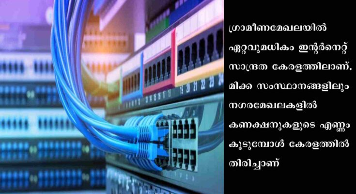 ഗ്രാമീണമേഖലയിൽ ഏറ്റവുമധികം ഇന്റർനെറ്റ് സാന്ദ്രത കേരളത്തിലാണ്. മിക്ക സംസ്ഥാനങ്ങളിലും നഗരമേഖലകളിൽ കണക്ഷനുകളുടെ എണ്ണം കൂടുമ്പോൾ കേരളത്തിൽ തിരിച്ചാണ്. കേരളത്തിലെ നഗരമേഖലകളിൽ ഓരോ 100 പേരിൽ 64 പേർക്കാണ് ഇന്റർനെറ്റ് കണക്ഷനുള്ളതെങ്കിൽ ഗ്രാമീണമേഖലകളിൽ 100 പേർക്കു 149 കണക്ഷനുകളാണ്. ദേശീയ തലത്തിൽ ഗ്രാമീണ മേഖലയിൽ ഓരോ 100 പേരിലും 37 പേർക്ക് മാത്രമാണ് ഇന്റർനെറ്റ് ഉള്ളത്. നഗരമേഖയിൽ 103 ആണ്. കേരളത്തിൽ ആകെ ഇന്റർനെറ്റ് കണക്ഷൻ 3.1 കോടി. മഹാരാഷ്ട്രയിലാണ് ഏറ്റവും കൂടുതൽ കണക്ഷൻ : 7.14 കോടി.