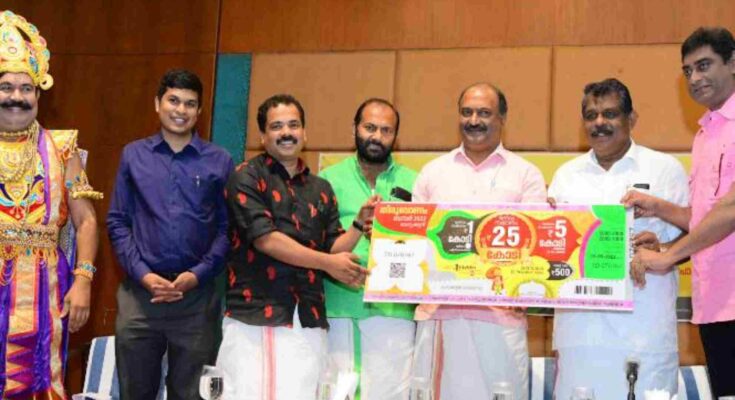 സംസ്ഥാന സർക്കാരിന്റെ ഈ വർഷത്തെ തിരുവോണം ബമ്പർ ഭാഗ്യക്കുറി ധനമന്ത്രി കെ.എൻ ബാലഗോപാൽ പ്രകാശനം ചെയ്തു. ചരിത്രത്തിലെ ഏറ്റവും വലിയ ഒന്നാം സമ്മാനത്തുകയായ 25 കോടി രൂപയാണ് ഇത്തവണത്തെ ഓണം ബമ്പറിന്റെ പ്രത്യേകത. അഞ്ചു കോടിയാണ് രണ്ടാം സമ്മാനം. 10 പേർക്ക് ഒരു കോടി രൂപ വീതം ലഭിക്കുന്ന മൂന്നാം സമ്മാനമാണ് മറ്റൊരു ആകർഷണീയതയെന്നും ലോട്ടറി പ്രകാശനം നിർവഹിച്ചു ധനമന്ത്രി പറഞ്ഞു.