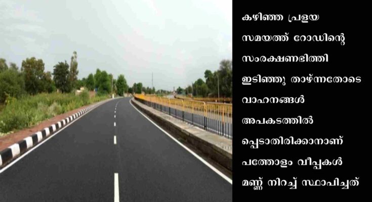 മുണ്ടക്കയം ഈസ്റ്റ് : വാഹനങ്ങൾ കുഴിയിലേക്ക് മറിഞ്ഞ് അപകടം ഉണ്ടാകാതിരിക്കാൻ സുരക്ഷയ്ക്കായി സ്ഥാപിച്ച വീപ്പകൾ അപകടക്കെണി ഒരുക്കുന്നു. ദേശീയപാതയിൽ മരുതുംമൂടിന് സമീപം 36-ാം മൈലിലാണ് സംഭവം. കഴിഞ്ഞ പ്രളയ സമയത്ത് റോഡിന്റെ സംരക്ഷണഭിത്തി ഇടിഞ്ഞു താഴ്ന്നതോടെ വാഹനങ്ങൾ അപകടത്തിൽപ്പെടാതിരിക്കാനാണ് പത്തോളം വീപ്പകൾ മണ്ണ് നിറച്ച് സ്ഥാപിച്ചത്.
