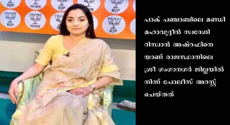 ന്യൂഡല്ഹി: ബി.ജെ.പി. മുന്വക്താവ് നൂപുര് ശര്മയെ വധിക്കാന് ലക്ഷ്യമിട്ട് രാജ്യാന്തര അതിര്ത്തി കടന്ന പാകിസ്താന് പൗരന് പിടിയില്. പാക് പഞ്ചാബിലെ മണ്ഡി മഹാവുദ്ദീന് സ്വദേശി റിസ്വാന് അഷ്റഫിനെയാണ് രാജസ്ഥാനിലെ ശ്രീ ഗംഗാനഗര് ജില്ലയില് നിന്ന് പോലീസ് അറസ്റ്റ് ചെയ്തത്.