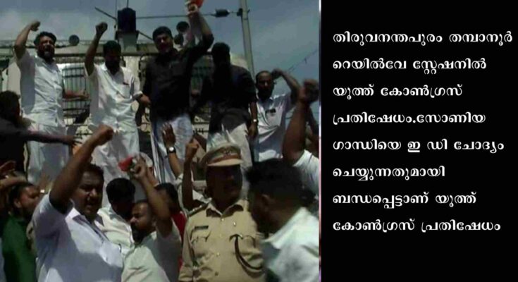 തിരുവനന്തപുരം: തിരുവനന്തപുരം തമ്പാനൂർ റെയിൽവേ സ്റ്റേഷനിൽ യൂത്ത് കോൺഗ്രസ് പ്രതിഷേധം.സോണിയ ഗാന്ധിയെ ഇ ഡി ചോദ്യം ചെയ്യുന്നതുമായി ബന്ധപ്പെട്ടാണ് യൂത്ത് കോൺഗ്രസ് പ്രതിഷേധം.