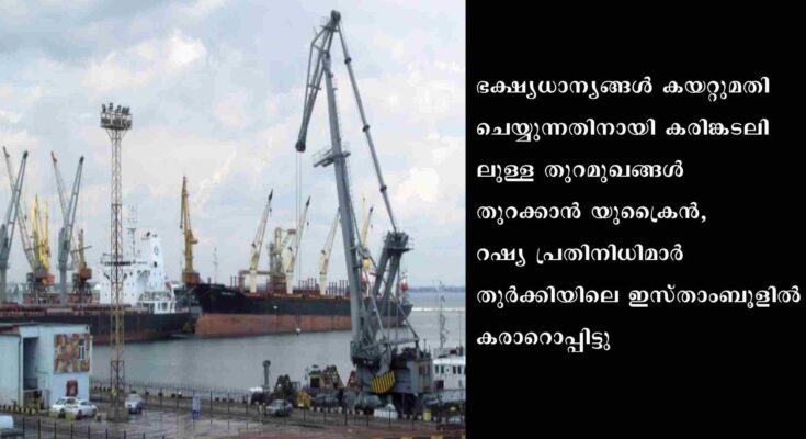 ഇസ്താംബുള്/കീവ്: റഷ്യയുടെ യുക്രൈന് അധിനിവേശത്തേത്തുടര്ന്നു രാജ്യാന്തരതലത്തിലുണ്ടായ ഭക്ഷ്യപ്രതിസന്ധി പരിഹരിക്കാന് ഐക്യരാഷ്ട്രസംഘടന(യു.എന്)യുടെയും തുര്ക്കിയുടെയും മധ്യസ്ഥതയില് കരാര്. ഭക്ഷ്യധാന്യങ്ങള് കയറ്റുമതി ചെയ്യുന്നതിനായി കരിങ്കടലിലുള്ള തുറമുഖങ്ങള് വീണ്ടും തുറക്കാന് യുക്രൈന്, റഷ്യ പ്രതിനിധിമാര് തുര്ക്കിയിലെ ഇസ്താംബൂളില് കരാറൊപ്പിട്ടു.