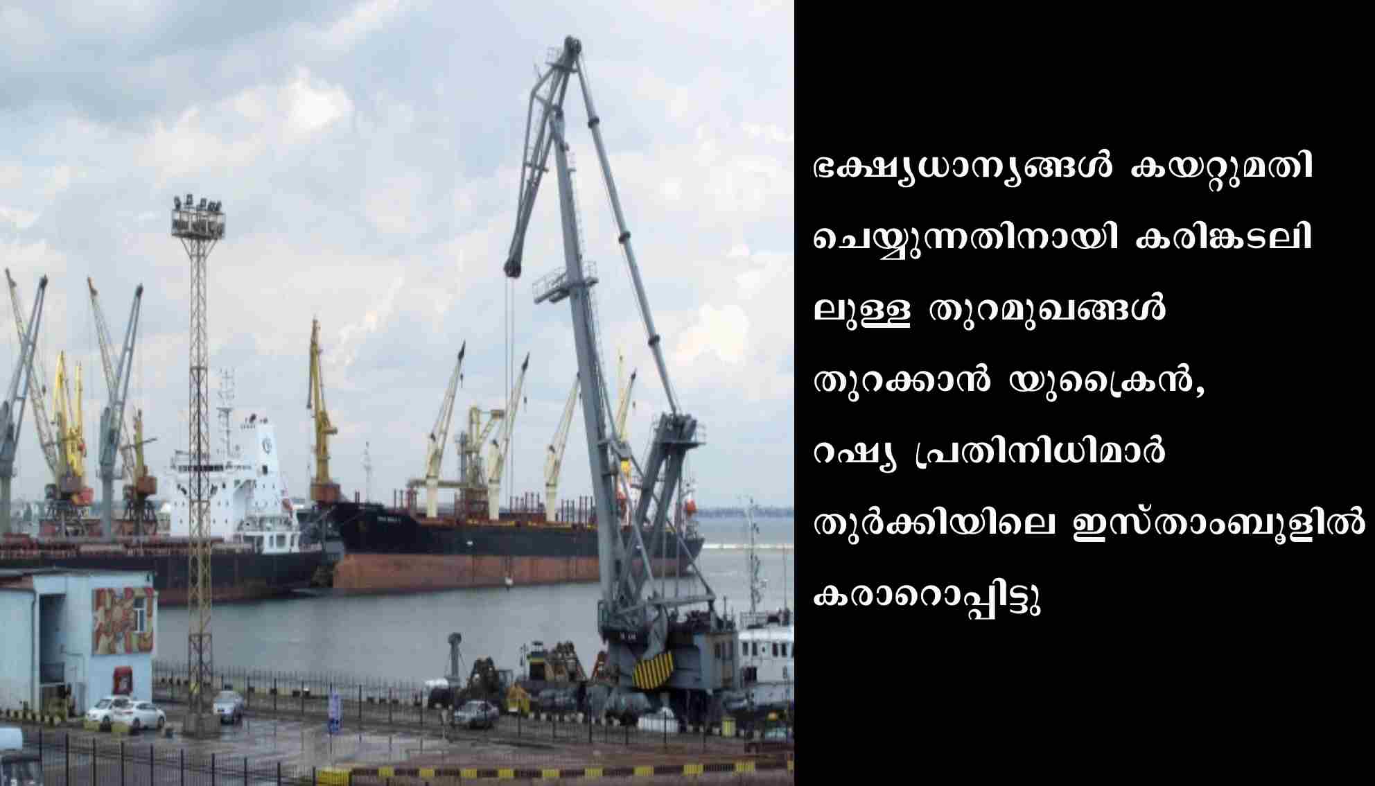 ഇസ്താംബുള്/കീവ്: റഷ്യയുടെ യുക്രൈന് അധിനിവേശത്തേത്തുടര്ന്നു രാജ്യാന്തരതലത്തിലുണ്ടായ ഭക്ഷ്യപ്രതിസന്ധി പരിഹരിക്കാന് ഐക്യരാഷ്ട്രസംഘടന(യു.എന്)യുടെയും തുര്ക്കിയുടെയും മധ്യസ്ഥതയില് കരാര്. ഭക്ഷ്യധാന്യങ്ങള് കയറ്റുമതി ചെയ്യുന്നതിനായി കരിങ്കടലിലുള്ള തുറമുഖങ്ങള് വീണ്ടും തുറക്കാന് യുക്രൈന്, റഷ്യ പ്രതിനിധിമാര് തുര്ക്കിയിലെ ഇസ്താംബൂളില് കരാറൊപ്പിട്ടു.