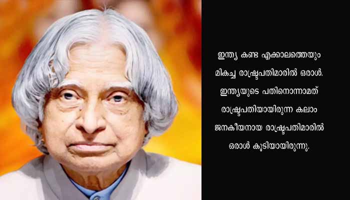 ന്യൂഡൽഹി: മുൻ രാഷ്ട്രപതി ഡോക്ടർ എപിജെ അബ്ദുൽ കലാമിന്റെ ഓർമ്മകൾക്ക് ജൂലൈ 27 ന് ഏഴ് വയസ്സ്. അവുൽ പകീർ ജൈനുലബ്ദീൻ അബ്ദുൽ കലാം എന്ന എപിജെ അബ്ദുൽ കലാമിന്റെ മുഖമുദ്ര ലാളിത്യമായിരുന്നു. ഇന്ത്യ കണ്ട എക്കാലത്തെയും മികച്ച രാഷ്ട്രപതിമാരിൽ ഒരാൾ. ഇന്ത്യയുടെ പതിനൊന്നാമത് രാഷ്ട്രപതിയായിരുന്ന കലാം ജനകീയനായ രാഷ്ട്രപതിമാരിൽ ഒരാൾ കൂടിയായിരുന്നു.