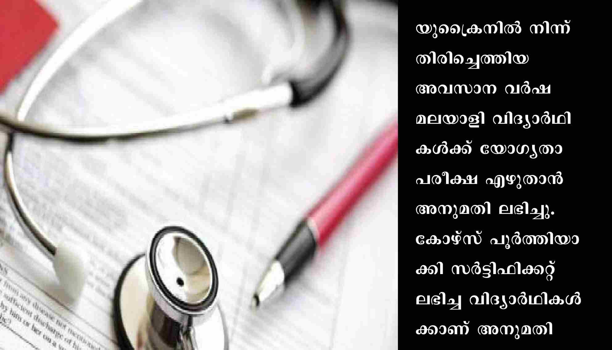 യുക്രൈനില്‍ നിന്ന് തിരിച്ചെത്തിയ മെഡിക്കല്‍ വിദ്യാര്‍ഥികള്‍ക്ക് യോഗ്യതാ പരീക്ഷ എഴുതാന്‍ അനുമതി