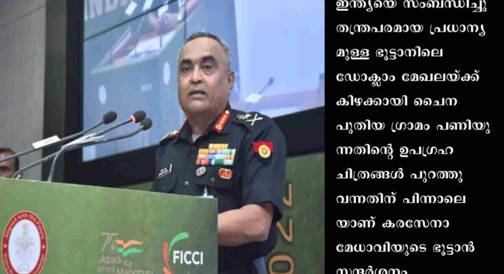 സന്ദര്ശനം ഇന്ത്യയും ഭൂട്ടാനും തമ്മിലുള്ള ഉഭയകക്ഷി ബന്ധം കൂടുതല് ശക്തമാക്കുമെന്ന് സൈന്യം പ്രസ്താവനയില് പറഞ്ഞു. ഡോക്ലാം മേഖലയിലെ ചൈനീസ് ഇടപെടലും ചര്ച്ചയാകും. 2017 ല് ഡോക്ലാമില് ഭൂട്ടാന്റെ പ്രദേശത്തേക്കു ചൈന റോഡ് നീട്ടാന് ശ്രമിച്ചതോടെ ഇന്ത്യയും ചൈനയും തമ്മില് 73 ദിവസം സംഘര്ഷാവസ്ഥ നിലനിന്നിരുന്നു.