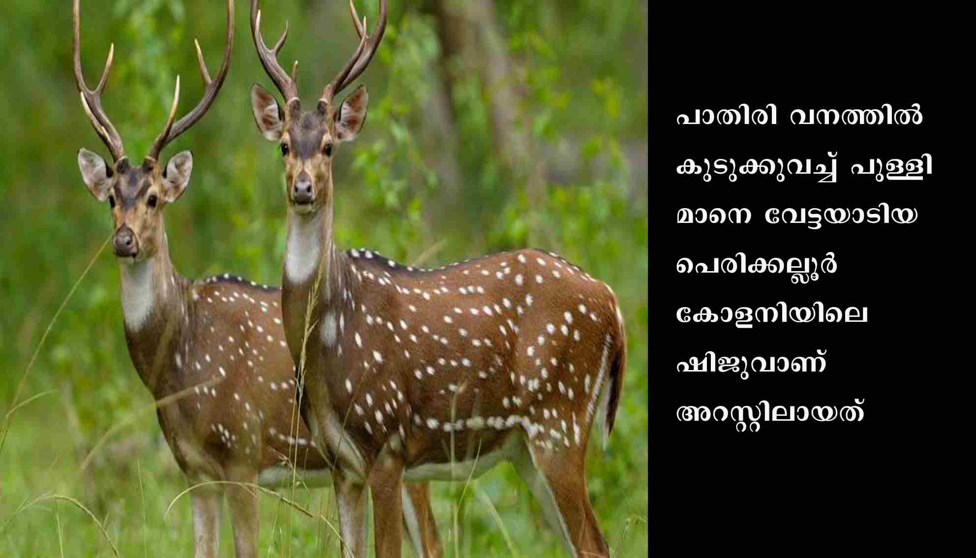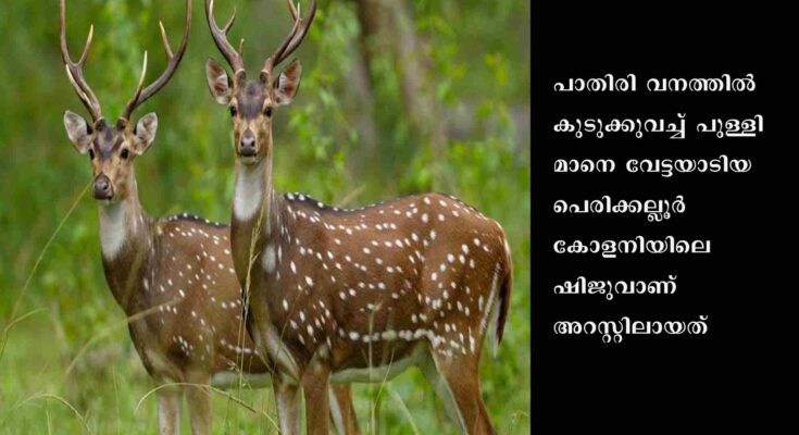 വനത്തിൽ കുടുക്കുവച്ച് പുള്ളിമാനെ വേട്ടയാടിയ സംഭവത്തിൽ ഒരാൾ അറസ്റ്റിൽ