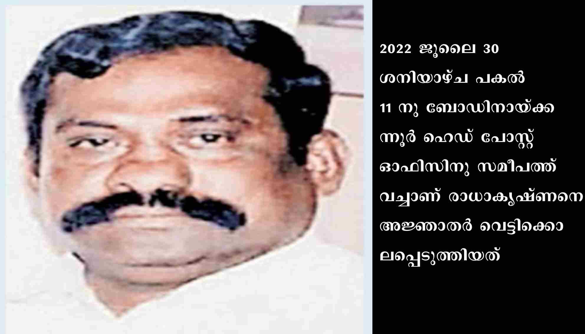 രാജകുമാരി: കേരളത്തിന്റെ അതിർത്തി പട്ടണമായ തമിഴ്നാട്ടിലെ ബോഡിനായ്ക്കന്നൂരിൽ വിമുക്ത ഭടനെ പട്ടാപ്പകൽ വെട്ടിക്കൊന്നു. ബോഡിനായ്ക്കന്നൂർ സ്വദേശി രാധാകൃഷ്ണൻ (71) ആണ് കൊല്ലപ്പെട്ടത്. 2022 ജൂലൈ 30 ശനിയാഴ്ച പകൽ 11നു ബോഡിനായ്ക്കന്നൂർ ഹെഡ് പോസ്റ്റ് ഓഫിസിനു സമീപത്ത് വച്ചാണ് രാധാകൃഷ്ണനെ അജ്ഞാതർ വെട്ടിക്കൊലപ്പെടുത്തിയത്. കേരള റജിസ്ട്രേഷനിലുള്ള ജീപ്പിലെത്തിയ നാലംഗ സംഘമാണ് രാധാകൃഷ്ണനെ കൊലപ്പെടുത്തിയതെന്ന് ദൃക്സാക്ഷികൾ പറയുന്നു.