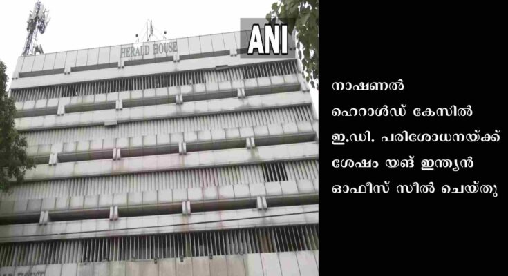 ന്യൂഡല്ഹി: നാഷണല് ഹെറാള്ഡ് കേസില് ഇ.ഡി. പരിശോധനയ്ക്ക് ശേഷം യങ് ഇന്ത്യന് ഓഫീസ് സീല് ചെയ്തു. രണ്ടു ദിവസം നീണ്ട പരിശോധനയ്ക്കുശേഷമാണു നടപടി. അനുവാദമില്ലാതെ ഓഫീസ് തുറക്കരുതെന്നും നിര്ദേശിച്ചിട്ടുണ്ട്. നാഷണല് ഹെറാള്ഡ് ഹൗസിലാണ് യങ് ഇന്ത്യ ലിമിറ്റഡിന്റെ ഓഫീസ് സ്ഥിതി ചെയ്യുന്നത്. ഇതിനു പിന്നാലെ കോണ്ഗ്രസ് അധ്യക്ഷ സോണിയാ ഗാന്ധിയുടെ വസതിയും മുന് അധ്യക്ഷന് രാഹുല് ഗാന്ധിയുടെ വസതിയും പാര്ട്ടി ആസ്ഥാനവും പോലീസ് വലയത്തിലാക്കി. പാര്ട്ടിക്കു നേരെയുള്ള ആക്രമണമാണു നടക്കുന്നതെന്നു മുതിര്ന്ന നേതാക്കള് ട്വീറ്റ് ചെയ്തു. പാര്ട്ടി ആസ്ഥാനത്തു ചേര്ന്ന കോണ്ഗ്രസ് നേതാക്കളുടെ യോഗം നരേന്ദ്ര മോദി സര്ക്കാരിന്റെ സമ്മര്ദങ്ങളെ തള്ളിക്കളയാന് ആഹ്വാനം ചെയ്തു. രാജ്യസഭാ പ്രതിപക്ഷ നേതാവ് മല്ലികാര്ജുന് ഖാര്ഗെ, ദിഗ്വിജയ് സിങ്, സല്മാന് ഖുര്ഷിദ്, പി. ചിദംബരം, ജയറാം രമേഷ് തുടങ്ങിയവര് യോഗത്തില് പങ്കെടുത്തു.