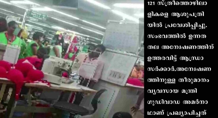 അനകപ്പള്ളി (ആന്ധ്രാപ്രദേശ്): അനകപ്പള്ളി ജില്ലയിലെ വസ്ത്രനിര്മാണശാലയില് വാതകചോര്ച്ച. 121 സ്ത്രീത്തൊഴിലാളികളെ ആശുപത്രിയില് പ്രവേശിപ്പിച്ചു. സംഭവത്തില് ഉന്നതതല അന്വേഷണത്തിന് ഉത്തരവിട്ട് ആന്ധ്രാ സര്ക്കാര്.അന്വേഷണത്തിനുള്ള തീരുമാനം വ്യവസായ മന്ത്രി ഗുഡിവാഡ അമര്നാഥാണ് പ്രഖ്യാപിച്ചത്. അന്വേഷണം പൂര്ത്തിയാകുംവരെ കമ്പനി അടച്ചിടും. കഴിഞ്ഞ രണ്ട് മാസത്തിനിടെ രണ്ടാമത്തെ വാതക ചോര്ച്ചയാണിതെന്നും മന്ത്രി ചൂണ്ടിക്കാട്ടി.ജൂണില് വിശാഖപട്ടണത്തെ അച്യുതപുരത്തുള്ള ലബോറട്ടറിയില് വാതക ചോര്ച്ചയുണ്ടായി. അന്ന് 178 സ്ത്രീ തൊഴിലാളികളാണ് രോഗബാധിതരായത്. തുടര്ന്ന് ചോര്ച്ചയുടെ കാരണം കണ്ടെത്താന് സര്ക്കാര് സംയുക്ത സമിതി രൂപീകരിച്ചിരുന്നു.