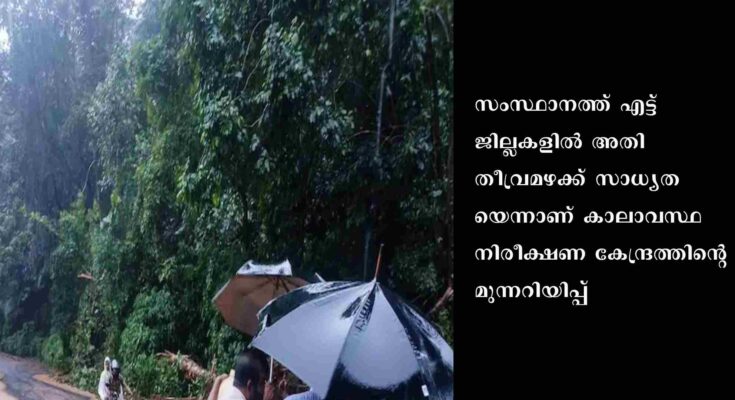 കോട്ടയം: മുണ്ടക്കയം വെട്ടുകല്ലാംകുഴിയിൽ ഉരുൾ പൊട്ടി. ഇത് ജനവാസ മേഖലയല്ലാത്തതിനാൽ ആളപായം ഒഴിവായി. രാവിലെ കൂട്ടിക്കൽ കടുങ്ങയിലും ഉരുൾ പൊട്ടിയിരുന്നു. സംസ്ഥാനത്ത് എട്ട് ജില്ലകളിൽ അതിതീവ്രമഴക്ക് സാധ്യതയെന്നാണ് കാലാവസ്ഥ നിരീക്ഷണ കേന്ദ്രത്തിന്റെ മുന്നറിയിപ്പ്. പത്തനംതിട്ട, ആലപ്പുഴ, കോട്ടയം, എറണാകുളം, ഇടുക്കി, തൃശ്ശൂർ, പാലക്കാട്, കണ്ണൂർ എന്നീ ജില്ലകളിലാണ് റെഡ് അലർട്ട് പ്രഖ്യാപിച്ചിരിക്കുന്നത്.  കൊല്ലം, മലപ്പുറം, കോഴിക്കോട്, വയനാട്, കാസർകോട് എന്നീ ജില്ലകളിൽ ഓറഞ്ച് അലർട്ട് പ്രഖ്യാപിച്ചിട്ടുണ്ട്. തിരുവനന്തപുരത്ത് യെല്ലോ അലർട്ടാണ് പ്രഖ്യാപിച്ചിരിക്കുന്നത്.