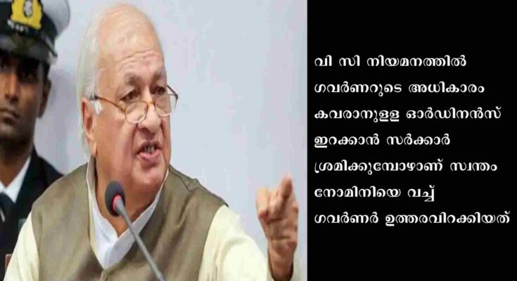 സർവ്വകലാശാല നോമിനിയായി ആസൂത്രണ ബോർഡ് വൈസ് ചെയർമാൻ വികെ രാമചന്ദ്രനെ നേരത്തെ തീരുമാനിച്ചെങ്കിലും അദ്ദേഹം സ്വയം ഒഴിവായതായി ഗവർണ്ണറെ സർവ്വകലാശാല അറിയിക്കുകയായിരുന്നു. ഓർഡിനൻസ് ഇറങ്ങും വരെ കാത്തിരിക്കാനായിരുന്നു സർക്കാറിൻറെയും സർവ്വകലാശാലയുടേയും നീക്കം. അതിനിടെയാണ് സർക്കാറിനെ വെട്ടിലാക്കിയുള്ള ഗവർണ്ണറുടെ നീക്കം.