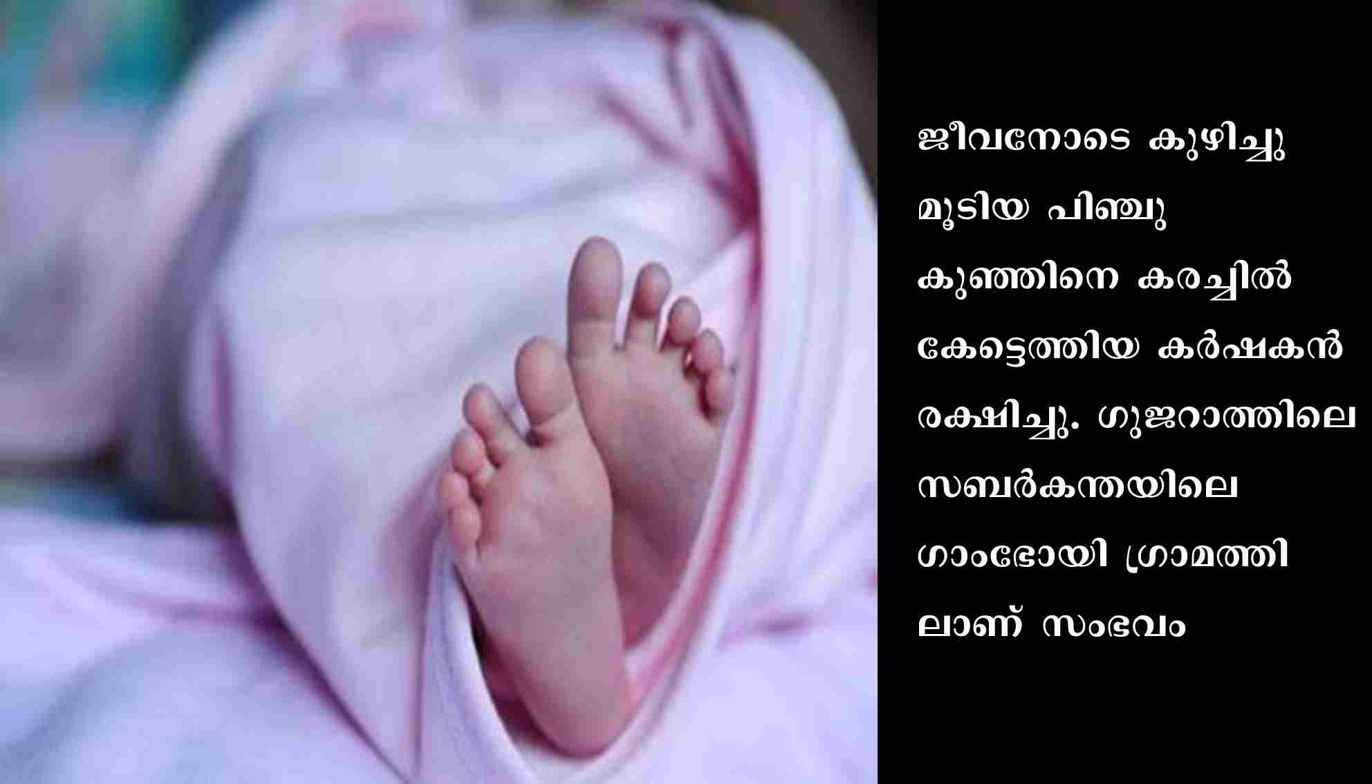 അഹമ്മദാബാദ്: ജീവനോടെ കുഴിച്ചുമൂടിയ പിഞ്ചുകുഞ്ഞിനെ കരച്ചില്‍ കേട്ടെത്തിയ കര്‍ഷകന്‍ രക്ഷിച്ചു.ഗുജറാത്തിലെ സബര്‍കന്തയിലെ ഗാംഭോയി ഗ്രാമത്തിലാണ് സംഭവം. കൃഷിയിടത്തില്‍ നിന്ന് കുഞ്ഞിന്റെ കരച്ചില്‍ കേട്ടതിനെ തുടര്‍ന്ന് നടത്തിയ പരിശോധനയിലാണ് കുഞ്ഞിനെ കണ്ടെത്തിയത്.