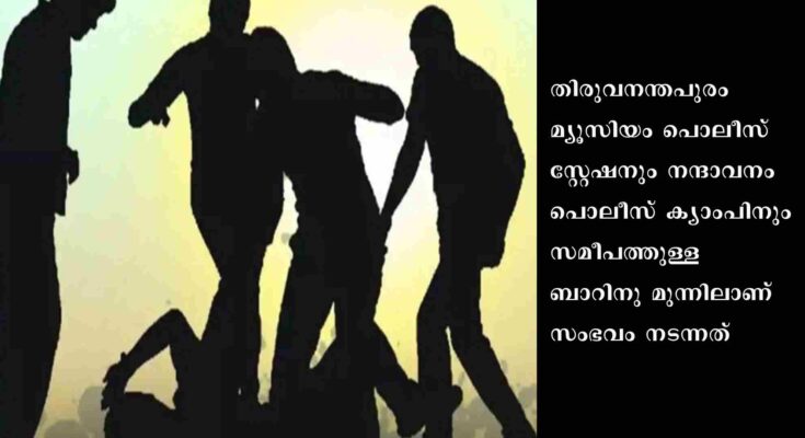 തിരുവനന്തപുരം: തിരുവനന്തപുരം മ്യൂസിയം ജംഗ്ഷന് സമീപത്തെ ബാറിന് മുന്നിൽ ഗുണ്ടാസംഘം വാൾ വീശി ഭീകരാന്തരീക്ഷം സൃഷ്ടിച്ചു. . ബാറിൽ നിന്നും മദ്യം നൽകാത്തതിനെ ചൊല്ലിയുണ്ടായ തർക്കത്തിന് പിന്നാലെയായിരുന്നു ഗുണ്ടാസംഘത്തിന്റെ വാൾ വീശൽ. തിരുവനന്തപുരം മ്യൂസിയം പൊലീസ് സ്റ്റേഷനും നന്ദാവനം പൊലീസ് ക്യാംപിനും സമീപത്തുള്ള ബാറിനു മുന്നിലാണ് സംഭവം നടന്നത്.