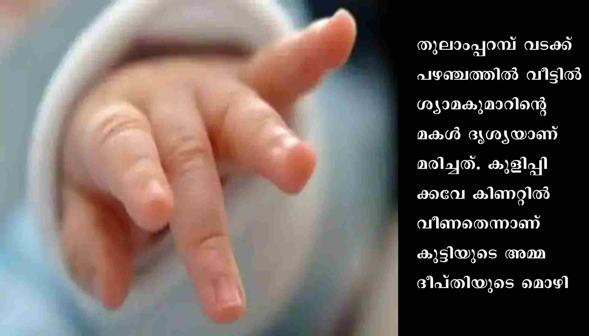 ആലപ്പുഴ : ഹരിപ്പാട് മണ്ണാർശാലയിൽ 48 ദിവസം പ്രായമായ കുഞ്ഞിനെ കിണറ്റിൽ മരിച്ച നിലയിൽ കണ്ടെത്തി. തുലാംപ്പറമ്പ് വടക്ക് പഴഞ്ചത്തിൽ വീട്ടിൽ ശ്യാമകുമാറിന്റെ മകൾ ദൃശ്യയാണ് മരിച്ചത്. കുളിപ്പിക്കവേ കിണറ്റിൽ വീണതെന്നാണ് കുട്ടിയുടെ അമ്മ ദീപ്തിയുടെ മൊഴി. അമ്മയ്ക്ക് മാനസിക പ്രശ്നങ്ങൾ ഉണ്ടെന്ന് പൊലീസ് പറഞ്ഞു.