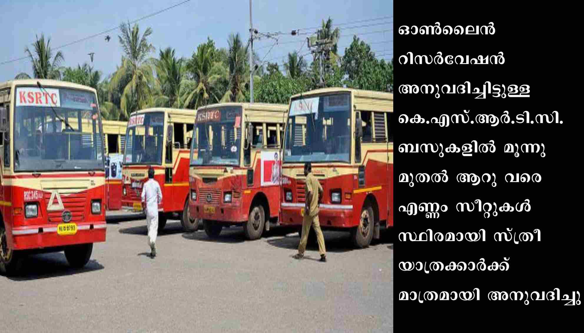 തിരുവനന്തപുരം: ഓണ്ലൈന് റിസര്വേഷന് അനുവദിച്ചിട്ടുള്ള കെ.എസ്.ആര്.ടി.സി. ബസുകളില് മൂന്നു മുതല് ആറു വരെ എണ്ണം സീറ്റുകള് സ്ഥിരമായി സ്ത്രീ യാത്രക്കാര്ക്ക് മാത്രമായി അനുവദിച്ചു. കെ.എസ്.ആര്.ടി.സിയുടെ റിസര്വേഷന് സിസ്റ്റത്തില് നിലവില്വന്ന സിംഗിള് ലേഡി ബുക്കിങ് സംവിധാനം വഴി ഈ സീറ്റുകള് സ്ത്രീകള്ക്ക് ഇഷ്ടനുസരണം തെരഞ്ഞെടുക്കാം. അടുത്തടുത്ത സീറ്റുകള് സ്ത്രീ യാത്രക്കാര്ക്കു തന്നെ ലഭിക്കുന്ന രീതിയിലാണ് പുതിയ സംവിധാനം.ബസില് ആരും തന്നെ ബുക്ക് ചെയ്തിട്ടില്ല എങ്കില് സിസ്റ്റം സ്വമേധയാ ഏറ്റവും സുരക്ഷിതമായ ഒരു സീറ്റ് സ്ത്രികള്ക്കായി അലോട്ട് ചെയ്യുകയും, അവര്ക്ക് ആ സീറ്റ് ബുക്ക് ചെയ്യാവുന്നതുമാണ്. ഇത്തരത്തില് ബുക്ക് ചെയ്ത ഒരു സീറ്റിനു തൊട്ടടുത്ത സീറ്റില് പുരുഷ യാത്രക്കാരന് ബുക്ക് ചെയ്യാന് സാധിക്കില്ല.ഒന്നിലധികം സ്ത്രീ യാത്രക്കാര്ക്ക് ഒരുമിച്ച് ബുക്ക് ചെയ്യുമ്പോള് പ്രത്യേകം പ്രത്യേകം സീറ്റ് ബുക്ക് ചെയ്യണം. കുടുംബത്തോടൊപ്പം യാത്ര ചെയ്യുന്ന സ്ത്രീകള്ക്ക് ലേഡീസ് ക്വട്ടോ ബുക്കിങ് ക്ലിക്ക് ചെയ്യാതെ റിസര്വ് ചെയ്യാം. ഇവര്ക്ക് സിംഗിള് ലേഡി ബുക്കിങ് ഇല്ലാത്ത ഏതൊരു സീറ്റും സ്വീകരിക്കാവുന്നതുമാണ്.