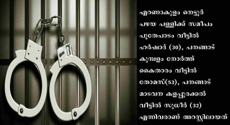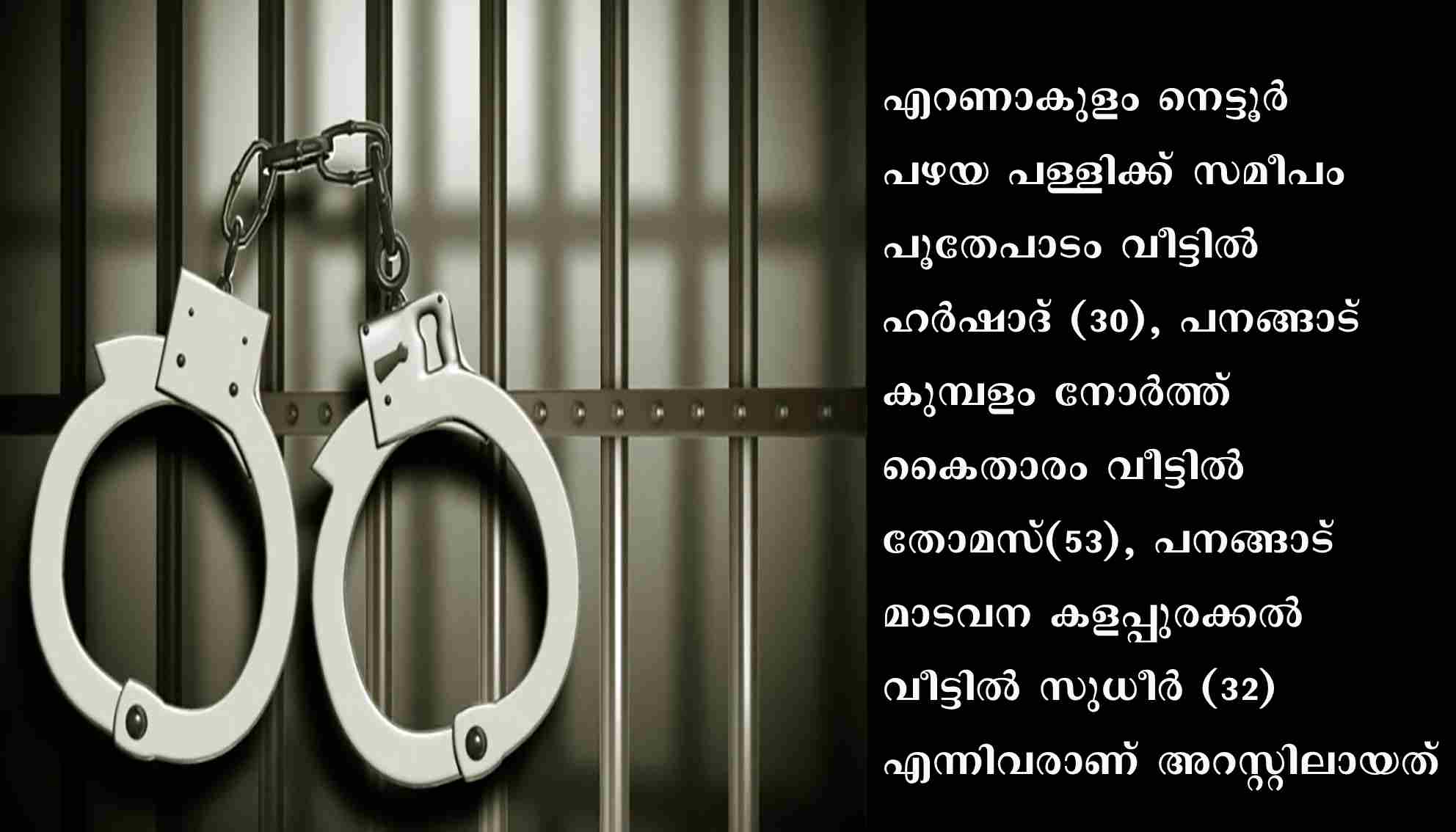 കൊച്ചി: വാക്കുതര്ക്കത്തിനിടെ വരാപ്പുഴ സ്വദേശി ശ്യാം (33) കുത്തേറ്റു മരിച്ച സംഭവത്തില് മൂന്നു പേര് അറസ്റ്റില്. എറണാകുളം നെട്ടൂര് പഴയ പള്ളിക്ക് സമീപം പൂതേപാടം വീട്ടില് ഹര്ഷാദ് (30), പനങ്ങാട്, കുമ്പളം നോര്ത്ത് കൈതാരം വീട്ടില് തോമസ്(53), പനങ്ങാട്, മാടവന, കളപ്പുരക്കല് വീട്ടില് സുധീര് (32) എന്നിവരാണ് അറസ്റ്റിലായത്. എറണാകുളം സൗത്ത് പാലത്തിനു താഴെ വാക്കുതര്ക്കത്തിനിടയില് വരാപ്പുഴ സ്വദേശിയായ ശ്യാമിനെ പ്രതികള് കുത്തിവീഴ്ത്തുകയായിരുന്നു. സംഭവത്തെക്കുറിച്ചു പോലീസ് പറയുന്നതിങ്ങനെ: പ്രതികള് മദ്യപിക്കാനാണ് നെട്ടൂരില് ഒത്തുകൂടിയത്. മദ്യപാനത്തിനുശേഷം പുലര്ച്ചെ ഒരു മണിയോടെ പ്രതിയായ സുധീറിന്റെ സുഹൃത്തിന്റെ കാറില് കൊച്ചിയിലേക്കു പുറപ്പെട്ടു. സൗത്ത് പാലത്തിനു താഴെയെത്തിയപ്പോള് ഇവര് ട്രാന്സ്ജെന്ഡേഴ്സിനെ കണ്ട് കാര് നിര്ത്തി. ഹര്ഷാദും തോമസും കാറില് നിന്ന് ഇറങ്ങി. ആ സമയം അവിടെ കൊല്ലപ്പെട്ട ശ്യാമും കുറച്ചു സുഹൃത്തുക്കളും ഉണ്ടായിരുന്നു.