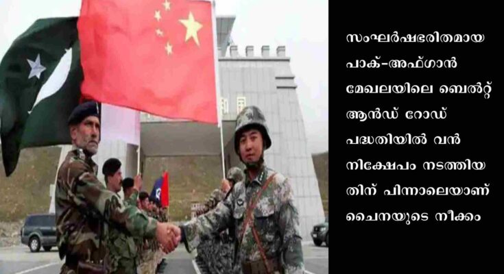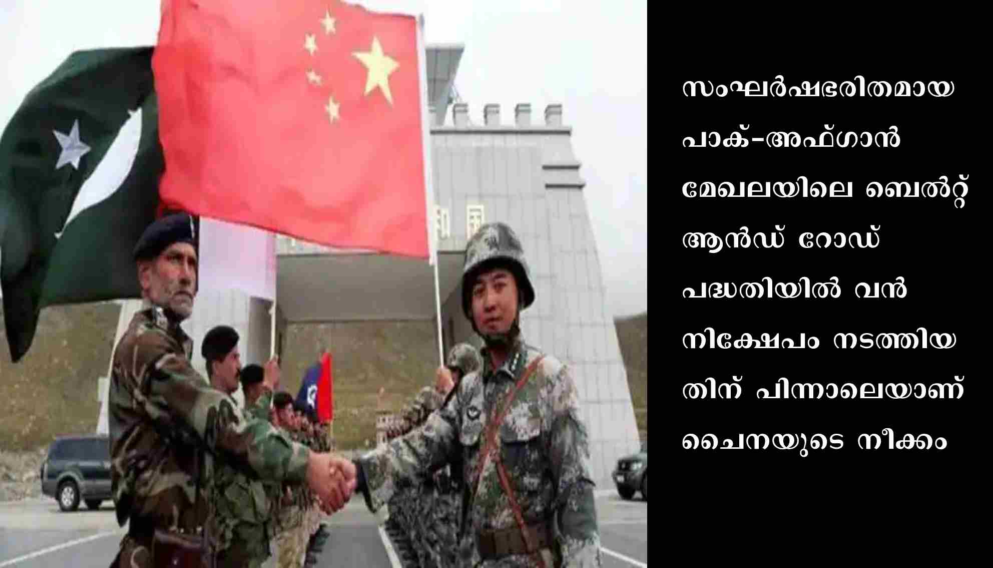 ഇസ്ലാമാബാദ്/ബീജിങ്: പാകിസ്താനിലും അഫ്ഗാനിസ്ഥാനിലും തങ്ങളുടെ സൈനികര്‍ക്കു താവളമൊരുക്കാനുള്ള നീക്കവുമായി ചൈന. സംഘര്‍ഷഭരിതമായ പാക്-അഫ്ഗാന്‍ മേഖലയിലെ ബെല്‍റ്റ് ആന്‍ഡ് റോഡ് പദ്ധതിയില്‍ വന്‍ നിക്ഷേപം നടത്തിയതിന് പിന്നാലെയാണ് ചൈനയുടെ നീക്കം. ഇരു രാജ്യങ്ങളിലെയും നയതന്ത്രവൃത്തങ്ങളാണ് ഇതു സംബന്ധിച്ച സൂചന പുറത്തുവിട്ടത്. പാക്-അഫ്ഗാന്‍ പാതയിലൂടെ മധ്യേഷ്യയില്‍ സ്വാധീനം വര്‍ധിപ്പിക്കാനാണു ചൈനയുടെ ശ്രമം.ഉപഗ്രഹങ്ങളെയും ഭൂഖണ്ഡാന്തര മിസൈലുകളെയും നിരീക്ഷിക്കാന്‍ സംവിധാനങ്ങളുള്ള ചൈനീസ് കപ്പല്‍ ചൊവ്വാഴ്ച രാവിലെ ശ്രീലങ്കന്‍ തുറമുഖത്ത് അടുപ്പിച്ചതില്‍ ഇന്ത്യ ആശങ്ക അറിയിച്ചതിനു പിന്നാലെയാണ് പാകിസ്താന്‍ കേന്ദ്രമാക്കിയുള്ള ചൈനയുടെ താല്‍പ്പര്യങ്ങളും പുറത്തുവരുന്നത്. സാമ്പത്തിക കാര്യങ്ങള്‍ക്കു മാത്രമല്ല, സൈനിക, നയതന്ത്ര കാര്യങ്ങളിലും പാകിസ്താന്‍ ചൈനയെ കൂടുതലായി ആശ്രയിക്കുന്നുണ്ട്. ഇതു മുതലെടുത്ത് തങ്ങളുടെ സൈനികര്‍ക്കായി ഔട്ട്പോസ്റ്റുകള്‍ നിര്‍മിക്കാന്‍ അനുവദിക്കണമെന്നാവശ്യപ്പെട്ടു ചൈന, പാകിസ്താനുമേല്‍ സമ്മര്‍ദം ചെലുത്തുകയാണ്. 47.65 ലക്ഷം കോടിരൂപയുടെ നിക്ഷേപമാണു ചൈന പാകിസ്താനില്‍ നടത്തിയിട്ടുള്ളത്. സൈനിയ- നയതന്ത്ര പിന്തുണയും ചൈനയില്‍ നിന്ന് പാകിസ്താന് ലഭിക്കുന്നുണ്ട്.