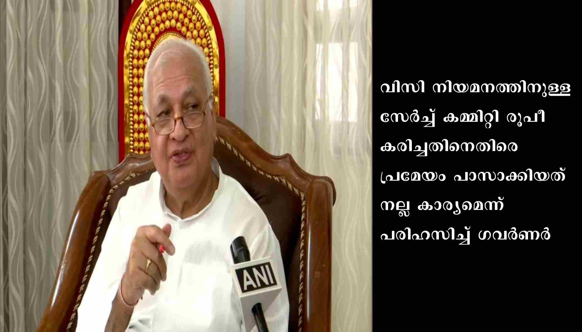 വിസി നിയമനത്തിനുള്ള സേർച്ച് കമ്മിറ്റി രൂപീകരിച്ചതിനെതിരെ പ്രമേയം പാസാക്കിയതിനെ പരിഹസിച്ച് ഗവർണർ ആരിഫ് മുഹമ്മദ് ഖാൻ