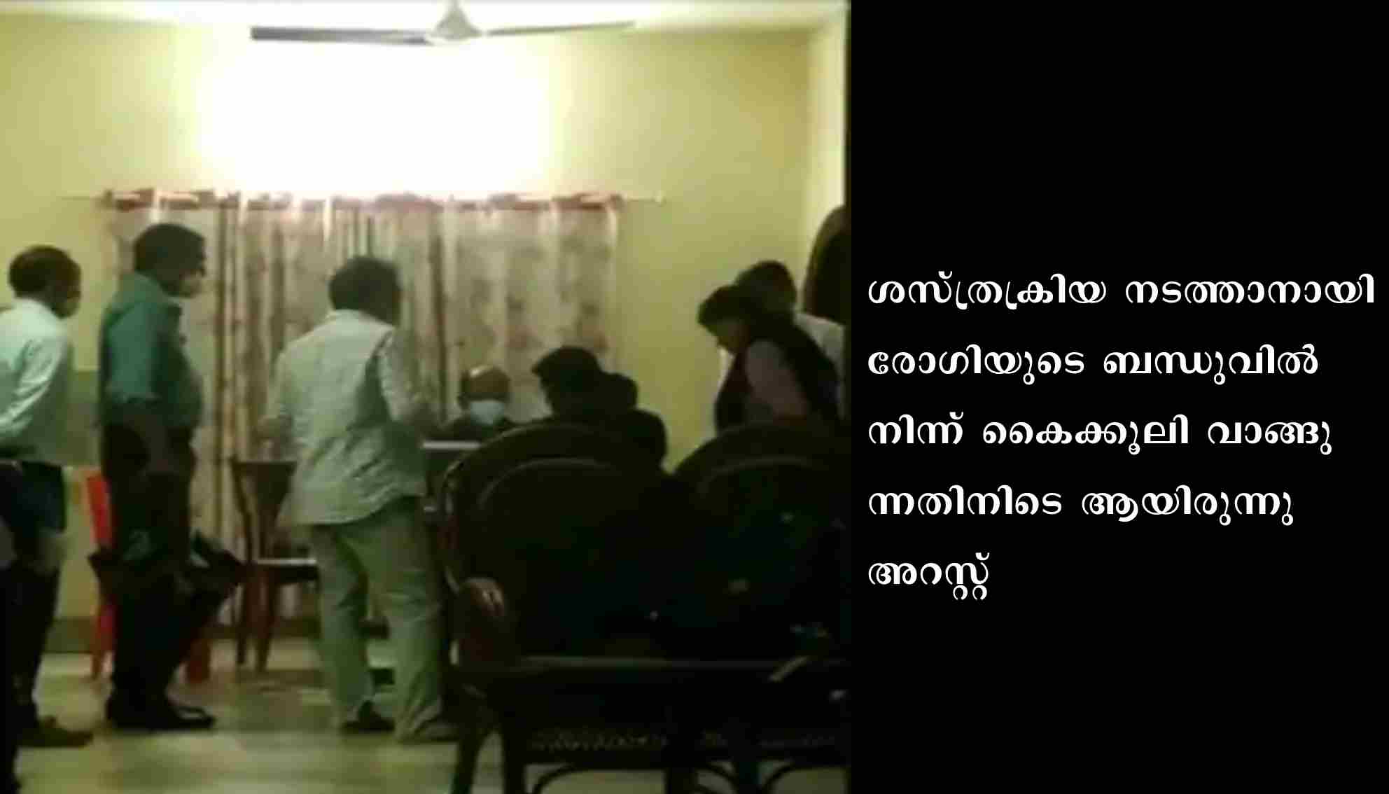 ഡോക്ടർ കൈക്കൂലി വാങ്ങുമ്പോൾ വീടിനു സമീപം ഒളിച്ചിരിക്കുകയായിരുന്ന വിജിലൻസ് സംഘം കയ്യോടെ പിടികൂടുകയായിരുന്നു.കോട്ടയം വിജിലൻസ് എസ്.പി പി.ജി. വിനോദ് കുമാറിന്റെ നിർദ്ദേശാനുസരണം വിജിലൻസ് റേഞ്ച് ഡി.വൈ.എസ്.പി പി.വി മനോജ് കുമാറിന്റെ നേതൃത്വത്തിലുള്ള ഉദ്യോഗസ്ഥരാണ് ഡോക്ടറെ കുടുക്കിയത്