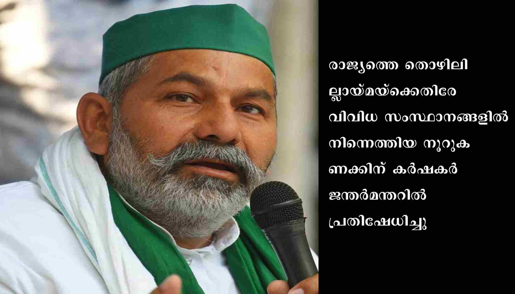 ന്യൂഡല്ഹി: രാജ്യത്തെ തൊഴിലില്ലായ്മയ്ക്കെതിരേ വിവിധ സംസ്ഥാനങ്ങളില് നിന്നെത്തിയ നൂറുകണക്കിന് കര്ഷകര് ജന്തര്മന്തറില് പ്രതിഷേധിച്ചു. സെപ്റ്റംബർ 6 ന് സംയുക്ത കിസാന് മോര്ച്ചയുടെ പ്രതിനിധികളെ കണ്ട് ഭാവിയിലെ സമരപരിപാടികള് തീരുമാനിക്കുമെന്ന് രാകേഷ് ടിക്കായത്ത് പറഞ്ഞു.ഭാരതീയ കിസാന് യൂണിയന് (ബി.കെ.യു) ഉള്പ്പെടെയുള്ള കര്ഷക സംഘടനകളുടെ നേതൃത്വത്തില് ‘മഹാപഞ്ചായത്ത്’ എന്ന പേരില് വിളിച്ചുചേര്ത്ത കര്ഷക കൂട്ടായ്മയാണ് പ്രതിഷേധപ്രകടനം നടത്തിയത്. വിളകളുടെ താങ്ങുവില കൃത്യമായി നടപ്പാക്കണമെന്ന് ഈ സംഘടനകള് നിരന്തരം ആവശ്യപ്പെട്ടു വരികയാണ്. കാര്ഷികനിയമങ്ങള്ക്കെതിരേ നടന്ന ഒരു വര്ഷം നീണ്ട സമരത്തിനിടെ കര്ഷകരുടെ പേരിലെടുത്ത കേസുകള് പിന്വലിക്കണമെന്നതും ഇവരുടെ ആവശ്യമാണ്. ഇതിനു പുറമേ, രാജ്യത്ത് വര്ധിച്ചുവരുന്ന തൊഴിലില്ലായ്മയ്ക്കെതിരേയും പ്രകടനത്തില് മുദ്രാവാക്യം ഉയര്ന്നു.അവസാന ശ്വാസം വരെ പോരാട്ടം തുടരുമെന്ന് കര്ഷക നേതാവ് രാകേഷ് ടിക്കായത്ത് ട്വീറ്റ് ചെയ്തു. കേന്ദ്രത്തിന്റെ നിര്ദേശമനുസരിച്ചാണു ഡല്ഹി പൊലീസ് പ്രവര്ത്തിക്കുന്നതെന്നും ടിക്കായത്ത് ആരോപിച്ചു. ”നിര്ത്തില്ല, തളരില്ല, തലകുനിക്കുകയുമില്ല.” അദ്ദേഹത്തിന്റെ ട്വീറ്റില് പറയുന്നു.