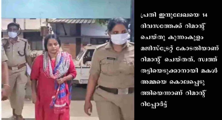 തൃശ്ശൂർ: കുന്നംകുളം കിഴൂരിൽ അമ്മയെ കൊന്നത് സ്വത്ത് തട്ടിയെടുക്കാനെന്ന് റിമാന്റ് റിപ്പോർട്ട്. പ്രതി ഇന്ദുലേഖയെ 14 ദിവസത്തേക്ക് റിമാന്റ് ചെയ്തു കുന്നംകുളം മജിസ്ട്രേറ്റ് കോടതിയാണ് റിമാന്റ് ചെയ്തത്. സ്വത്ത് തട്ടിയെടുക്കാനായി മകൾ അമ്മയെ കൊലപ്പെടുത്തിയെന്നാണ് റിമാന്റ് റിപ്പോർട്ട്. സ്വത്തിന്റെ അവകാശികളിലൊരാളായ അമ്മയെ കൊലപ്പെടുത്തിയാൽ വേഗത്തിൽ സ്വത്ത് കൈക്കലാക്കാമെന്ന് മകൾ കരുതി. പ്രതിക്കായി അടുത്ത ദിവസങ്ങളിൽ കസ്റ്റഡി അപേക്ഷ നൽകുമെന്ന് അന്വേഷണ സംഘം പറഞ്ഞു.