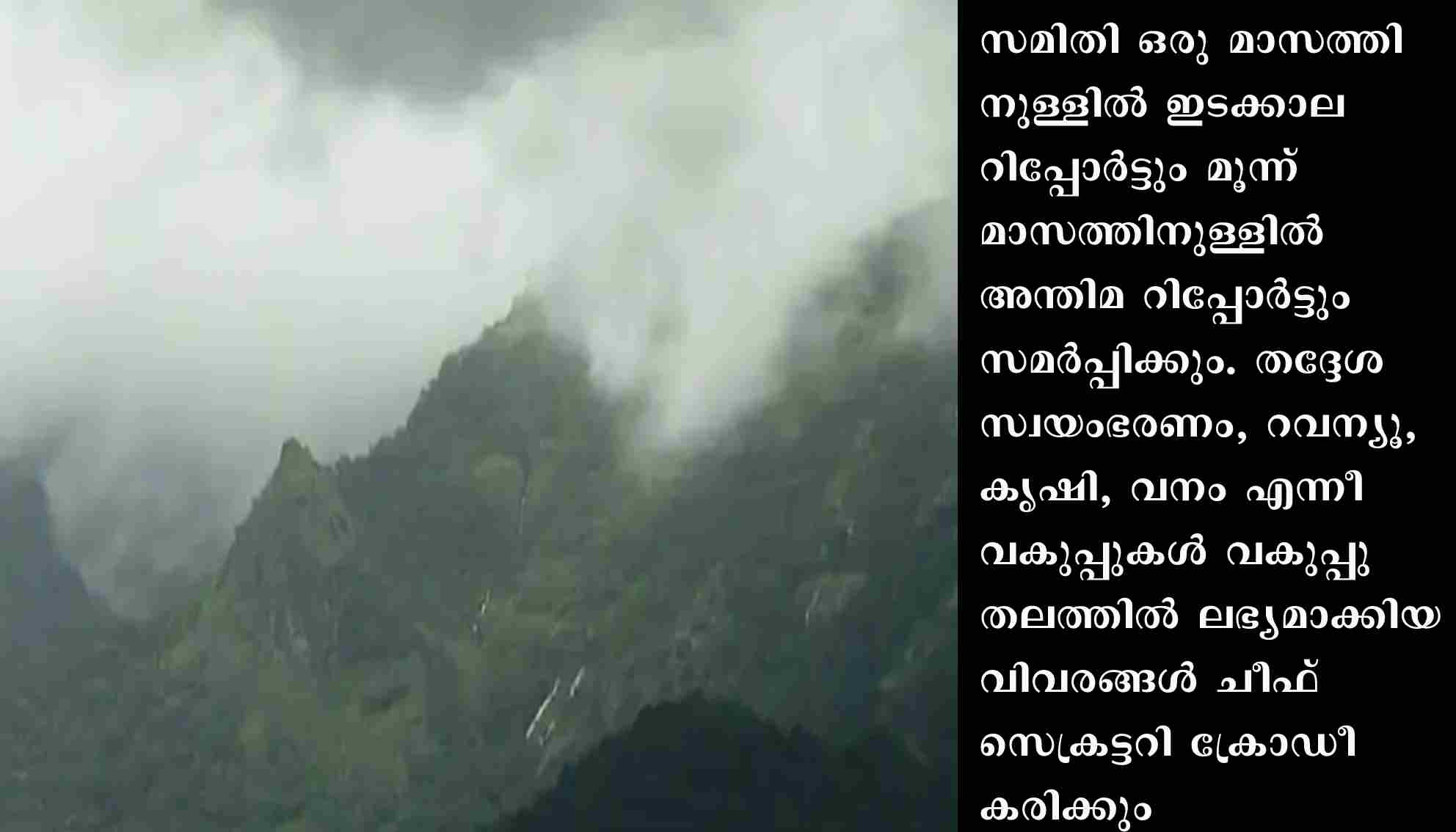 സാങ്കേതികവിദ്യാ സംവിധാനം വഴിയുള്ള കണക്കെടുപ്പിലെ വിശദാംശങ്ങൾ നേരിട്ടുള്ള പരിശോധന വഴി ഉറപ്പിക്കും. ഇക്കാര്യങ്ങൾ പഠിച്ച് സുപ്രീംകോടതിയിൽ റിപ്പോർട്ട് സമർപ്പിക്കാൻ വിദഗ്ധ സമതി രൂപീകരിക്കും. സമിതി ഒരു മാസത്തിനുള്ളിൽ ഇടക്കാല റിപ്പോർട്ടും മൂന്ന് മാസത്തിനുള്ളിൽ അന്തിമ റിപ്പോർട്ടും സമർപ്പിക്കും. തദ്ദേശ സ്വയംഭരണം, റവന്യൂ, കൃഷി, വനം എന്നീ വകുപ്പുകൾ വകുപ്പുതലത്തിൽ ലഭ്യമാക്കിയ വിവരങ്ങൾ ചീഫ് സെക്രട്ടറി ക്രോഡീകരിക്കും. ഉപഗ്രഹ സംവിധാനം വഴി തയ്യാറാക്കിയ ഡാറ്റയും വകുപ്പുതല ഡാറ്റയും വിദഗ്ധ സമിതി പരിശോധിക്കും. 115 വില്ലേജുകളിലാണ് ബഫർസോൺ വരുന്നത്. ഇവയുടെ യഥാർത്ഥ വിവരം കൃത്യമായി രേഖപ്പെടുത്താനാണ് വിദഗ്ധ സമിതി രൂപീകരിച്ചത്.