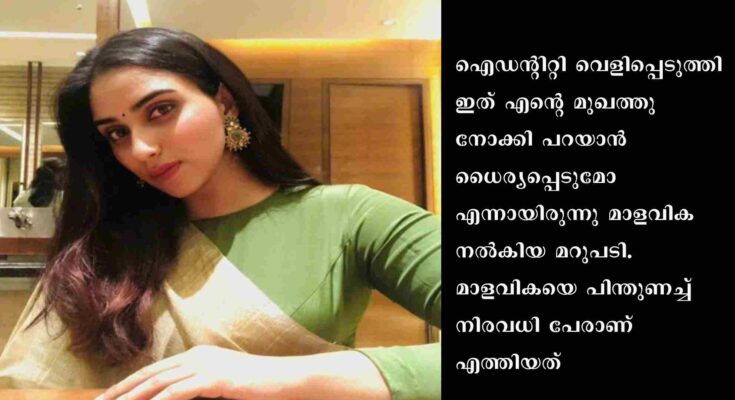 മാളവികയും കാളിദാസും ജയറാമിന്റെ മുതുകില്‍ ഇരുന്ന് കളിക്കുന്ന ചെറുപ്പകാല ചിത്രം പങ്കുവച്ചപ്പോള്‍ ഇതേ വസ്ത്രത്തില്‍ ചിത്രം റിക്രിയേറ്റ് ചെയ്ത് കാണാന്‍ ആഗ്രഹിക്കുന്നു എന്നാ കമന്റിന് കള്ളപ്പേരിനു പിന്നില്‍ ഒളിച്ചിരുന്ന് ഇത്തരത്തില്‍ കമന്റുകള്‍ പറയാന്‍ എളുപ്പമാണ്. ഐഡന്റിറ്റി വെളിപ്പെടുത്തി ഇത് എന്റെ മുഖത്തുനോക്കി പറയാന്‍ ധൈര്യപ്പെടുമോ എന്നായിരുന്നു മാളവിക നല്‍കിയ മറുപടി. മാളവികയെ പിന്തുണച്ച്‌ നിരവധി പേരാണ് എത്തിയത്.