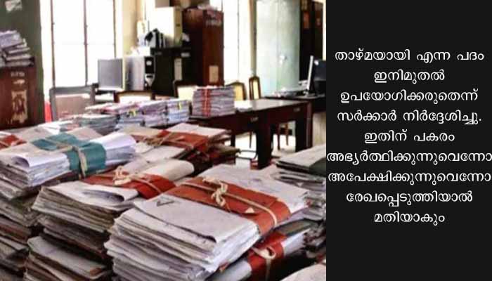 ‘താഴ്മയായി’ ഇനി അപേക്ഷിക്കേണ്ട; ഒഴിവാക്കാൻ സർക്കാർ നിർദ്ദേശം
