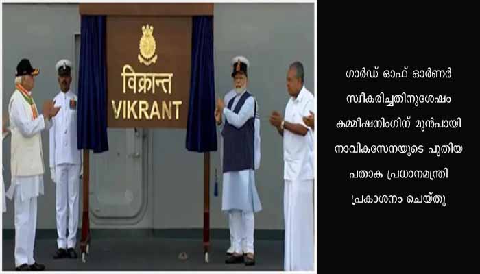 ഗാർഡ് ഓഫ് ഓർണർ സ്വീകരിച്ചതിനുശേഷം കമ്മീഷനിംഗിന് മുൻപായി നാവികസേനയുടെ പുതിയ പതാക പ്രധാനമന്ത്രി പ്രകാശനം ചെയ്തു. കൊളോണിയൽ മുദ്രകൾ പൂർണമായി നീക്കിയ പതാകയാണ് പ്രകാശനം ചെയ്തത്. വിക്രാന്ത് സമർപ്പണത്തിലൂടെ രാജ്യം പുതിയൊരു സാക്ഷിയാവുകയാണ് എന്ന് ചടങ്ങ് അഭിസംബോധന ചെയ്യവേ പ്രധാനമന്ത്രി നരേന്ദ്രമോദി പറഞ്ഞു. ശക്തമായ ഭാരതത്തിന്റെ ശക്തമായ ചിത്രമാണിത്. രാജ്യത്തിന്റെ പ്രതിബദ്ധതയുടെ പ്രതീകം.