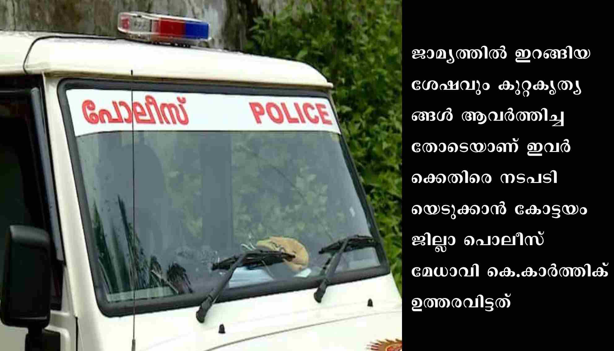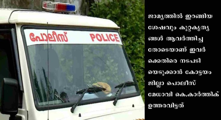 ജാമ്യത്തിൽ ഇറങ്ങിയ ശേഷവും കുറ്റകൃത്യങ്ങൾ ആവർത്തിച്ചതോടെയാണ് ഇവർക്കെതിരെ നടപടിയെടുക്കാൻ കോട്ടയം ജില്ലാ പൊലീസ് മേധാവി കെ.കാർത്തിക് ഉത്തരവിട്ടത്. നാഗമ്പടം സ്വദേശി വർണൻ എന്ന വർണ സുതനെയാണ് കാപ്പ നിയമം ചുമത്തി ജില്ലയിൽ നിന്ന് പുറത്താക്കിയത്. മുപ്പത് വയസുകാരനായ വർണസുതൻ കഞ്ചാവ് വിൽപന മുതൽ സ്ത്രീകൾക്കെതിരായ ആക്രമണം വരെ പതിവാക്കിയ സാഹചര്യത്തിലാണ് ഒരു വർഷത്തേക്ക് ജില്ലയിൽ നിന്ന് പുറത്താക്കി കൊണ്ടുളള ഉത്തരവ് ജില്ലാ മജിസ്ട്രേറ്റ് പുറപ്പെടുവിച്ചത്