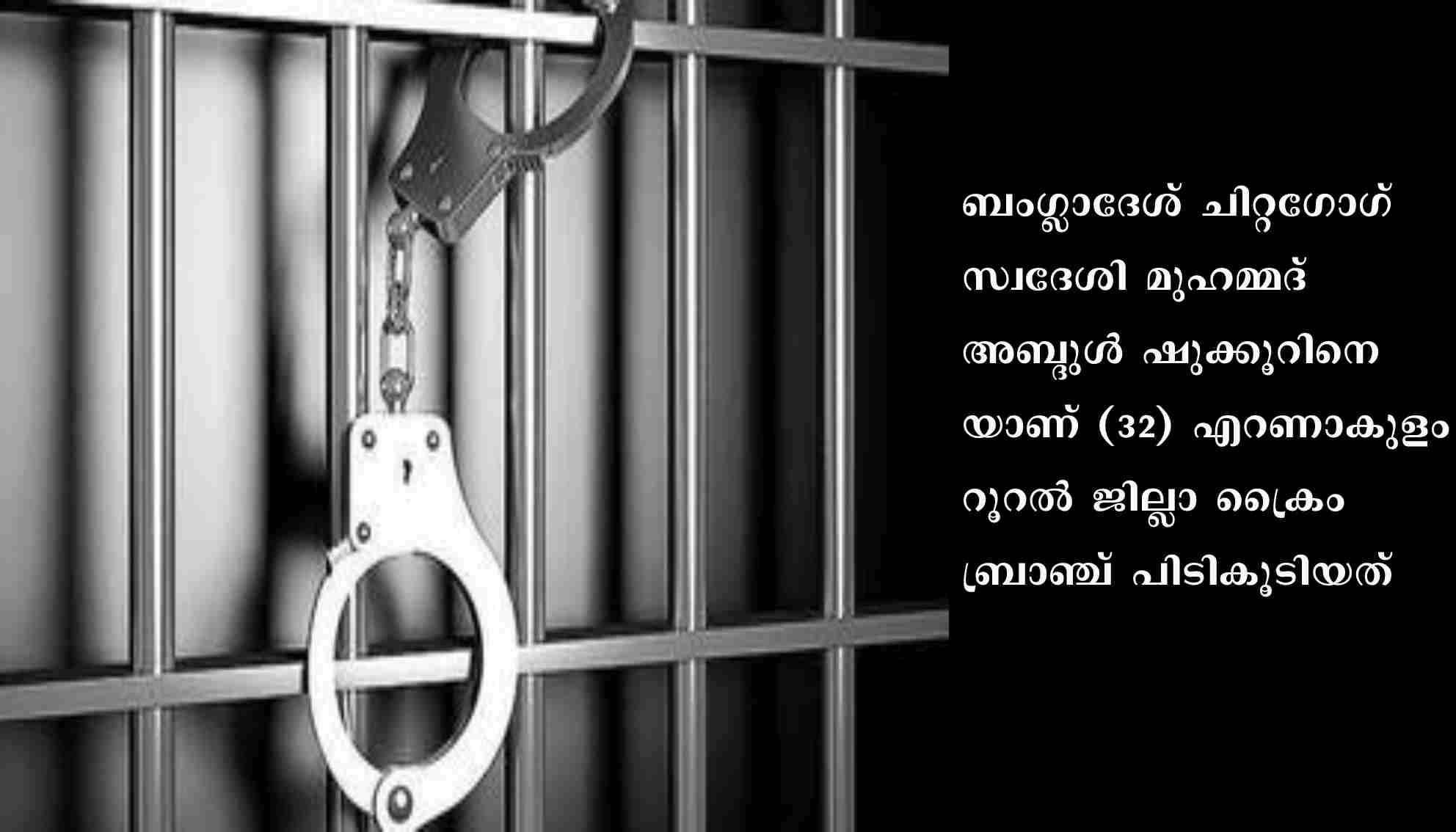 നെടുമ്പാശേരി വിമാനത്താവളം വഴി വ്യാജരേഖകളുമായി ഷാര്ജയിലേക്ക് കടക്കാന് ശ്രമിച്ച 4 ബംഗ്ലാദേശികളെ ഓഗസ്റ്റ് 27 ന് അറസ്റ്റ് ചെയ്തിരുന്നു. ഇന്ത്യക്കാരെന്ന വ്യാജേനയാണ് ഇവര് പോകാന് ശ്രമിച്ചത്. ജില്ലാ പോലീസ് മേധാവി വിവേക് കുമാറിന്റെ നേതൃത്വത്തില് ജില്ലാ ക്രൈംബ്രാഞ്ച് ഇതേക്കുറിച്ചു നടത്തിയ അന്വേഷണത്തില് വ്യാജരേഖകള് തയ്യാറാക്കി നല്കുന്ന റാക്കറ്റിനെക്കുറിച്ചു വിവരം ലഭിച്ചിരുന്നു. ഈ സംഘത്തിലെ പ്രധാന ഏജന്റാണ് അബ്ദുള് ഷുക്കൂര്. മംഗലാപുരം വിമാനത്താവളം വഴി രണ്ടുപേരെ വിദേശത്തേക്കു കടത്താന് കൊണ്ടുവരുമ്പോഴാണ് ഇയാളെ പോലീസ് പിടികൂടിയത്. ബംഗ്ലാദേശില്നിന്ന് ഇന്ത്യയിലേക്ക് ആളുകളെ കൊണ്ടുവന്ന് പാസ്പോര്ട്ട് ഉള്പ്പെടെയുള്ള രേഖകള് തയാറാക്കി നല്കി മനുഷ്യക്കടത്ത് നടത്തുകയാണ് ഇയാള് ചെയ്യുന്നത്.ഡി.െവെ.എസ്.പി: വി. രാജീവ്, എസ്.ഐ: ടി.എം.സൂഫി, എ.എസ്.ഐ: സി.ഡി. സാബു, എസ്.സി.പി.ഒ. ലിജോ ജേക്കബ് തുടങ്ങിയവരാണ് അന്വേഷണ സംഘത്തിലുള്ളത്.