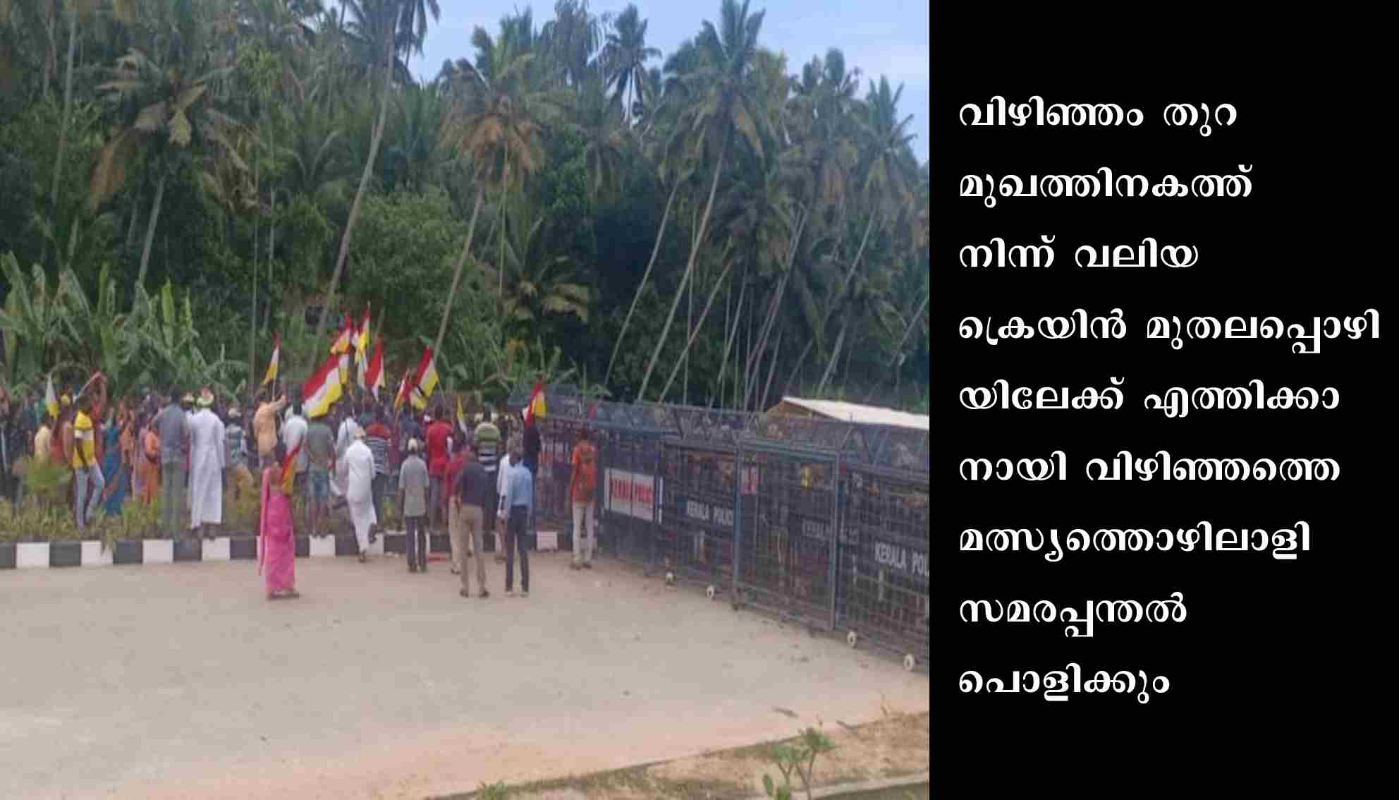 വിഴിഞ്ഞം തുറമുഖത്തിനകത്ത് നിന്ന് വലിയ ക്രെയിൻ മുതലപ്പൊഴിയിലേക്ക് എത്തിക്കാനായി വിഴിഞ്ഞത്തെ മത്സ്യത്തൊഴിലാളി സമരപ്പന്തൽ പൊളിക്കും. ചെറിയ ക്രെയിൻ ഉപയോഗിച്ച് വല പൊക്കാനുള്ള ശ്രമം പരാജയപ്പെട്ടതിനെ തുടർന്നാണ് വലിയ ക്രെയിൻ കൊണ്ടുപോകുന്നത്. ഇതിനെ തുടർന്നാണ് വിഴിഞ്ഞം തുറമുഖത്തിനകത്ത് നിന്ന് വലിയ ക്രെയിൻ എത്തിക്കുന്നത് . ക്രെയിൻ കൊണ്ടുപോകുന്നതിനായി പന്തൽ പൊളിക്കാൻ ലത്തീൻ അതിരൂപത സന്നദ്ധത അറിയിക്കുകയായിരുന്നു.
