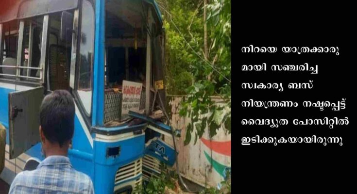 പാലക്കാട്: പാലക്കാട് പെരിങ്കന്നൂരിൽ സ്വകാര്യ ബസ് വൈദ്യുത പോസ്റ്റിൽ ഇടിച്ച് 12 പേർക്ക് പരിക്ക്. നിറയെ യാത്രക്കാരുമായി സഞ്ചരിച്ച സ്വകാര്യ ബസ് നിയന്ത്രണം നഷ്ടപ്പെട്ട് വൈദ്യുത പോസിറ്റിൽ ഇടിക്കുകയായിരുന്നു. വൈദ്യുത വകുപ്പ് ജീവനക്കാരുടെ സമയോചിത ഇടപെടൽ മൂലം വൻ അപകടം ഒഴിവായി. യാത്രകാരുമായി പട്ടാമ്പി ഭാഗത്തേക്ക് പോവുകയായിരുന്നു ബസ്. ഇടിയുടെ ആഘാതത്തിൽ വൈദ്യുത പോസ്റ്റ് തകർന്നു. ബസിൻ്റെ മുൻവശം ഏതാണ്ട് പൂർണ്ണമായി തകർന്നു. ആരുടേയും പരിക്ക് ഗുരുതരമല്ല. അതേസമയം പാലക്കാട് ഗുരുവായൂർ റൂട്ടിൽ സ്വകാര്യ ബസുകളുടെ മത്സരയോട്ടം തടയാൻ അധികൃതർ നടപടി സ്വീകരിച്ചു. അമിതവേഗം തടയാൻ സ്പെഷ്യൽ ഡ്രൈവാണ് മോട്ടോർ വാഹന വകുപ്പ് സ്വീകരിച്ചിരിക്കുന്നത്.