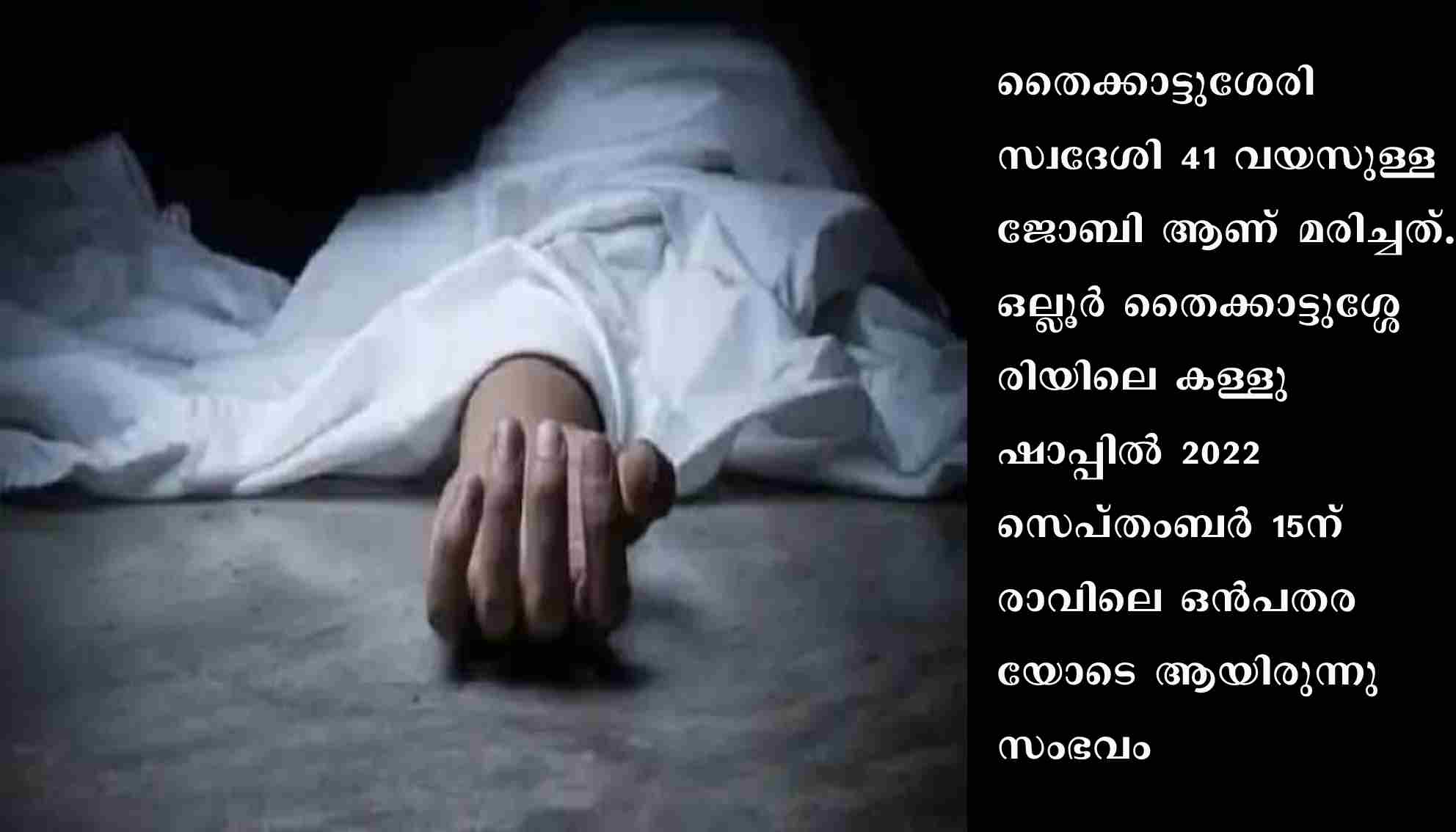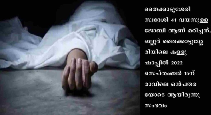 തൃശൂർ: ഒല്ലൂരിൽ കള്ളുഷാപ്പിലുണ്ടായ വാക്കുതർക്കത്തിനിടെ കുത്തേറ്റ യുവാവ് മരിച്ചു. തൈക്കാട്ടുശേരി സ്വദേശി 41 വയസുള്ള ജോബി ആണ് മരിച്ചത്. ഒല്ലൂർ തൈക്കാട്ടുശ്ശേരിയിലെ കള്ളുഷാപ്പിൽ 2022 സെപ്തംബർ 15ന് രാവിലെ ഒൻപതരയോടെ ആയിരുന്നു സംഭവം. ജോബിയെ കുത്തിയ വരന്തരപ്പിള്ളി സ്വദേശി രാഗേഷിനെ ഒല്ലൂർ പോലീസ് അറസ്റ്റ് ചെയ്തു.