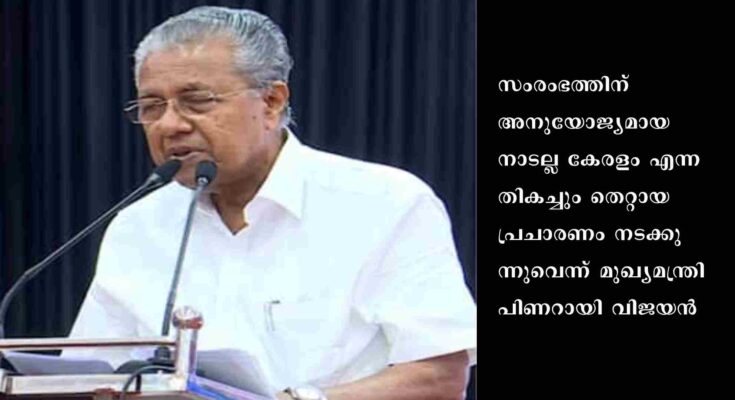 കണ്ണൂർ: സംരംഭത്തിന് അനുയോജ്യമായ നാടല്ല കേരളം എന്ന തികച്ചും തെറ്റായ പ്രചാരണം നടക്കുന്നുവെന്ന് മുഖ്യമന്ത്രി പിണറായി വിജയൻ. എന്നാൽ കേരളത്തിൽ നിന്ന് ഒരു ദുരനുഭവവും ഉണ്ടായിട്ടില്ലെന്ന് നിരവധി സംരംഭകർ തന്നോട് നേരിട്ട് പറഞ്ഞു. ഒറ്റപ്പെട്ട സംഭവങ്ങൾ ചിലയിടത്ത് ഉണ്ടായിട്ടുണ്ടാകാം. അത് ചൂണ്ടിക്കാട്ടിയാണ് നാടിനെയാകെ ഇകഴ്ത്തുന്ന പ്രചാരണം നടക്കുന്നതെന്നും അദ്ദേഹം പറഞ്ഞു. കണ്ണൂരിൽ തൊഴിൽ സഭയുടെ സംസ്ഥാന തല ഉദ്ഘാടനം നിർവ്വഹിച്ച് സംസാരിക്കയായിരുന്നു പിണറായി.