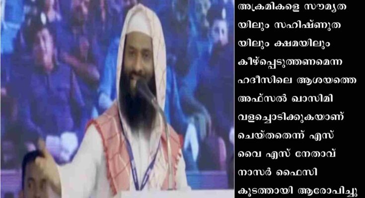 അക്രമികളെ സൗമ്യതയിലും സഹിഷ്ണുതയിലും ക്ഷമയിലും കീഴ്പ്പെടുത്തണമെന്ന ഹദീസിലെ ആശയത്തെ അഫ്സൽ ഖാസിമി വളച്ചൊടിക്കുകയാണ് ചെയ്തതെന്ന് എസ് വൈ എസ് നേതാവ് നാസർ ഫൈസി കൂടത്തായി ആരോപിച്ചു. പ്രവാചക ചരിത്രം മുഴുവൻ പറയാതെ അണികളിൽ പൊട്ടിത്തെറി ഉണ്ടാക്കാനുള്ള ശ്രമമാണ് പോപ്പുലർ ഫ്രണ്ടിൻറേതെന്നായിരുന്നു എസ്കെഎസ്എസ്എഫ് സംസ്ഥാന ജനറൽ സെക്രട്ടറി സത്താർ പന്തല്ലൂരിൻറെ വിമർശനം. വൈകാരികതയും തീവ്ര ചിന്തയും ഇളക്കി വിടുന്ന പോപ്പൂലർ ഫ്രണ്ടിന് പ്രവാചകൻറെ ചരിത്രം മുഴുവൻ വേണ്ട.സഹിഷ്ണുതയുടെ കഥയല്ല ഇവർക്ക് വേണ്ട്.തീവ്ര സംഘങ്ങളുടെ ശൈലി ഇതാണെന്നും സത്താർ പന്തല്ലൂർ ഫേസ്ബുക്കിൽ കുറിച്ചു. സംഘടന വളര്ത്താൻ വേണ്ടി ചിലർ ഹദീസ് സംബന്ധിച്ച് തെറ്റദ്ധാരണ പരത്തുകയാണെന്ന് കേരള മുസ്ളീം ജമാ അത്ത് സെക്രട്ടറി പേരോട് അബ്ദു റഹ്മാൻ സഖാഫിയും പറഞ്ഞു.