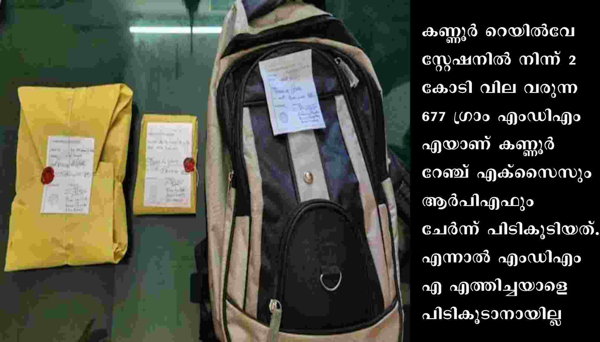 കണ്ണൂർ റെയിൽവേ സ്റ്റേഷനിൽ നിന്ന് രണ്ട് കോടി വില വരുന്ന 677 ഗ്രാം എംഡിഎംഎയാണ് കണ്ണൂർ റേഞ്ച് എക്സൈസും ആർപിഎഫും ചേർന്ന് പിടികൂടിയത്. എന്നാൽ എംഡിഎംഎ എത്തിച്ചയാളെ പിടികൂടാനായില്ല. ഇയാൾ ഓടി രക്ഷപ്പെട്ടു. ബെംഗളൂരുവിൽ നിന്ന് എത്തിയ ട്രെയിനിൽ നിന്നാണ് മയക്കുമരുന്ന് പിടിച്ചത്. പ്രതിയുടെ സിസിടിവി ദൃശ്യങ്ങൾ പൊലീസിന് ലഭിച്ചിട്ടുണ്ട്. ഇത് കേന്ദ്രീകരിച്ചായിരിക്കും ഇനി അന്വേഷണം. കഴിഞ്ഞ ദിവസവും കണ്ണൂർ റെയിൽവേ സ്റ്റേഷനിൽ നിന്ന് രണ്ട് കോടി രൂപ വില വരുന്ന എംഡിഎംഎയുമായി ഒരാൾ അറസ്റ്റിലായിരുന്നു.