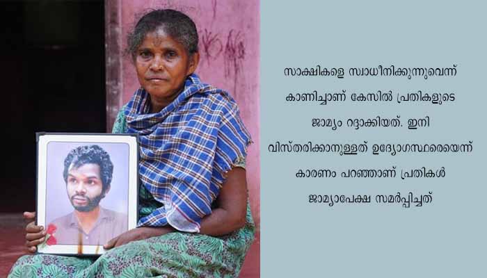 പ്രതികൾ സാക്ഷികളെ സ്വാധീനിച്ചെന്ന് കണ്ടെത്തിയായിരുന്നു പാലക്കാട്ടെ പ്രത്യേക കോടതി മുഴുവൻ പ്രതികളുടെയും ജാമ്യം റദ്ദാക്കിയത്. ഇതിനെതിരെയാണ് 12 പ്രതികൾ ഹൈക്കോടതിയെ സമീപിച്ചത്. ഹൈക്കോടതി അനുവദിച്ച ജാമ്യം റദ്ദാക്കാൻ കീഴ്കോടതിയ്ക്ക് കഴിയില്ലെന്നായിരുന്നു വാദം. എന്നാൽ ജാമ്യ വ്യവസ്ഥയിലെ ലംഘനം ഉണ്ടായാൽ വിചാരണ കോടതിയ്ക്ക് തുടർ നടപടി ആകാമെന്ന് പ്രോസിക്യൂഷനും കോടതിയിൽ വാദിച്ചു. പ്രോസിക്യൂഷൻ വാദം അംഗീകരിച്ചാണ് ഹൈക്കോടതി പ്രതികളുടെ ജാമ്യം റദ്ദാക്കിയ കീഴ് ക്കോടതി ഉത്തരവ് ശരിവെച്ചത്.