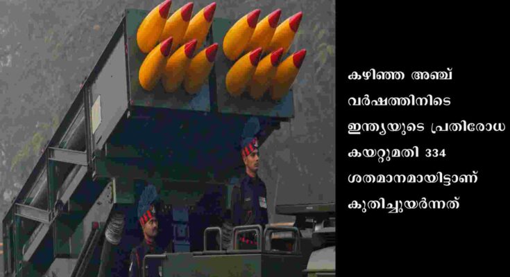 ന്യൂ ഡൽഹി : ഏറ്റവും വലിയ രണ്ടാമത്തെ സായുധ സേനയായ ഇന്ത്യൻ പ്രതിരോധ മേഖല വിപ്ലവത്തിന്റെ കൊടുമുടിയിൽ. ആയുധം ഇറക്കുമതി ചെയ്യുന്ന രാജ്യങ്ങളുടെ പട്ടികയിൽ മാത്രം ഇടം പിടിച്ചിരുന്ന ഇന്ത്യ ആയുധം കയറ്റുമതി ചെയ്യുന്നവരിലും പ്രധാനിയാണ്. കഴിഞ്ഞ അഞ്ച് വർഷത്തിനിടെ ഇന്ത്യയുടെ പ്രതിരോധ കയറ്റുമതി 334 ശതമാനമായിട്ടാണ് കുതിച്ചുയർന്നത്. എഴുപത്തിയഞ്ച് രാജ്യങ്ങളാണ് അവയുടെ സുരക്ഷ ഉറപ്പിക്കാൻ ഇന്ത്യയുടെ ആയുധങ്ങൾ ഉപയോഗിക്കുന്നത്. മേയ്ക്ക് ഇൻ ഇന്ത്യ, ആത്മനിർഭർ ഭാരത് തുടങ്ങിയ കേന്ദ്ര പദ്ധതികളിലൂടെയാണ് ഇന്ത്യ ഇത് സാദ്ധ്യമാക്കിയത്.