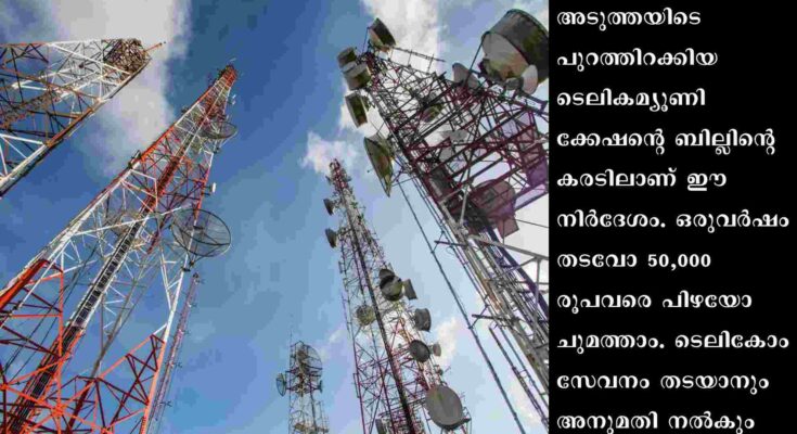 ന്യൂഡല്ഹി: സിം ലഭിക്കാന് വ്യാജ രേഖകള് നല്കുകയോ വാട്സാപ്പ്, ടെലിഗ്രാം പോലുള്ളവയില് വ്യാജ പേരില് അക്കൗണ്ട് ഉണ്ടാക്കുകയോ ചെയ്താല് തടവും പിഴയും ലഭിച്ചേക്കാം. അടുത്തയിടെ പുറത്തിറക്കിയ ടെലികമ്യൂണിക്കേഷന്റെ ബില്ലിന്റെ കരടിലാണ് ഈ നിര്ദേശം. ഒരുവര്ഷം തടവോ 50,000 രൂപവരെ പിഴയോ ചുമത്താം. ടെലികോം സേവനം തടയാനും അനുമതി നല്കും. വാറിന്റില്ലാതെ അറസ്റ്റ് ചെയ്യാന് പോലീസിന് അനുമതി നല്കാനും കോടതിയുടെ അനുമതിയില്ലാതെ അന്വേഷണം നടത്താനും ബില്ലില് ശിപാര്ശയുണ്ട്.