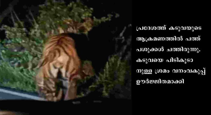 ഇതിനിടെ റോഡിലൂടെ ഓടി പോകുന്ന കടുവയുടെ ദൃശ്യങ്ങൾ പുറത്തുവന്നു. പ്രദേശത്ത് കടുവയുടെ ആക്രമണത്തിൽ പത്ത് പശുക്കൾ ചത്തിരുന്നു.കടുവയെ പിടികൂടാനുള്ള ശ്രമം വനംവകുപ്പ് ഊർജ്ജിതമാക്കി.