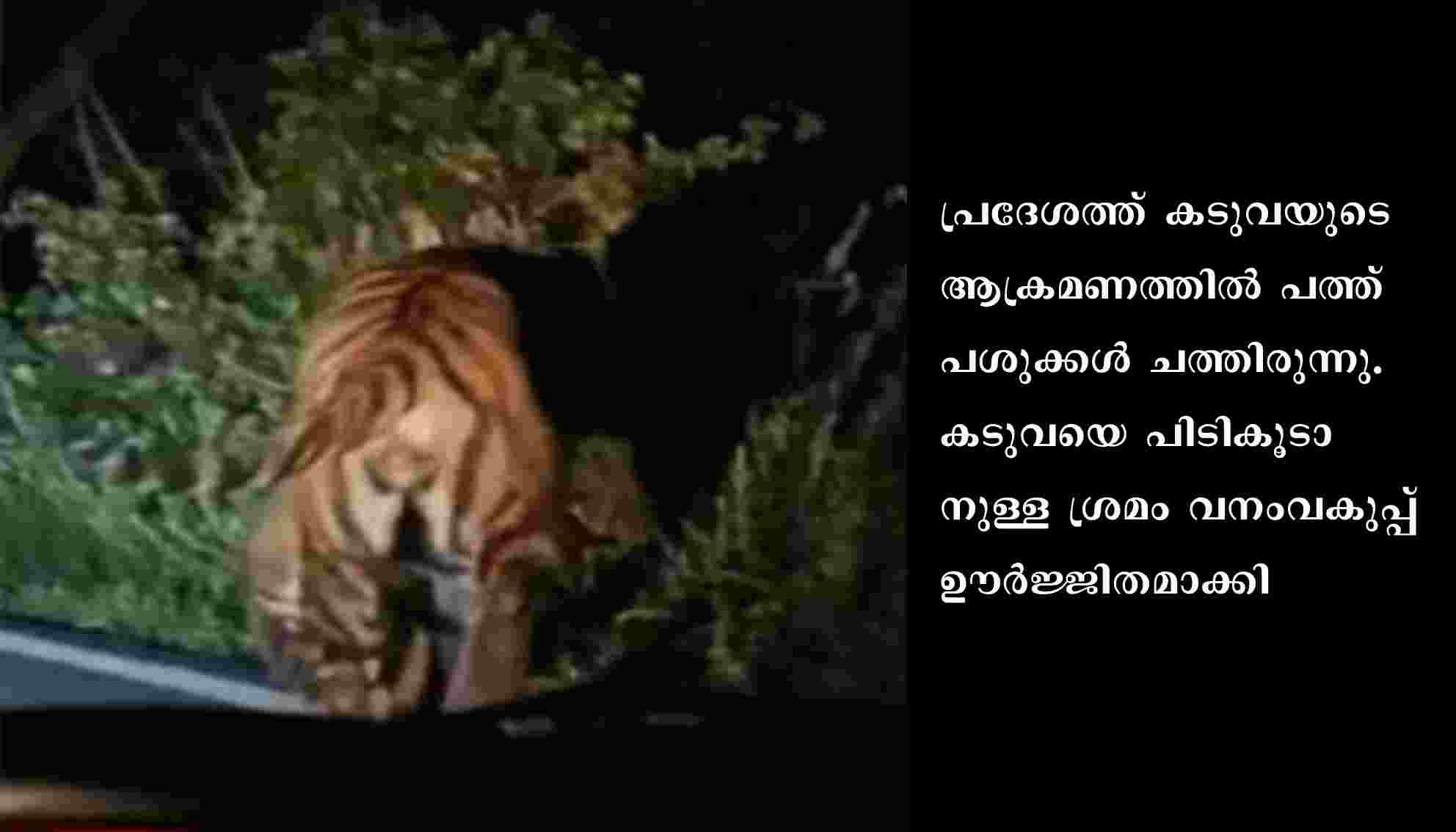 ഇതിനിടെ റോഡിലൂടെ ഓടി പോകുന്ന കടുവയുടെ ദൃശ്യങ്ങൾ പുറത്തുവന്നു. പ്രദേശത്ത് കടുവയുടെ ആക്രമണത്തിൽ പത്ത് പശുക്കൾ ചത്തിരുന്നു.കടുവയെ പിടികൂടാനുള്ള ശ്രമം വനംവകുപ്പ് ഊർജ്ജിതമാക്കി.
