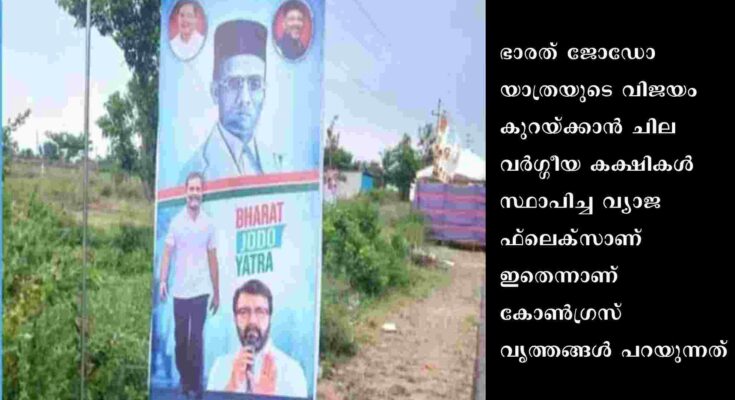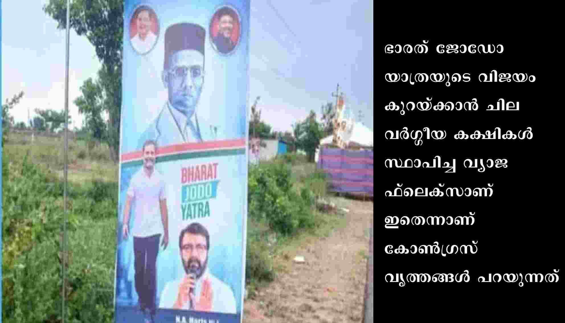 എന്നാൽ ഇത്തരത്തിൽ ഒരു ചിത്രം കോൺഗ്രസ് വച്ചിട്ടില്ലെന്നാണ് കർണാടക കോൺഗ്രസ് വൃത്തങ്ങൾ വ്യക്തമാക്കുന്നത്. ഭാരത് ജോഡോ യാത്രയുടെ വിജയം കുറയ്ക്കാൻ ചില വർഗ്ഗീയ കക്ഷികൾ സ്ഥാപിച്ച വ്യാജ ഫ്ലെക്സാണ് ഇതെന്നാണ് കോൺഗ്രസ് വൃത്തങ്ങൾ പറയുന്നത്. ഇത്തരം പ്രചാരണങ്ങൾക്കെതിരെ നിയമനടപടി അടക്കം ആലോചിക്കുന്നതായി കോൺഗ്രസ് വൃത്തങ്ങൾമാദ്ധ്യമങ്ങളോട് പറഞ്ഞു.