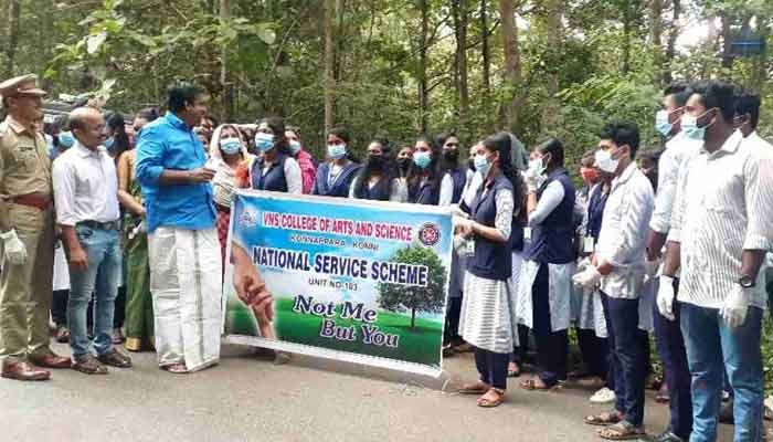 കോന്നി റെയിഞ്ച് ഫോറസ്റ്റ് ഓഫീസര്‍ ജോജി ജെയിംസ്, ഉത്തരകുമരംപേരൂര്‍ ഫോറസ്റ്റ് സ്റ്റേഷന്‍ സെക്ഷന്‍ ഫോറസ്റ്റ് ഓഫീസര്‍ മധുസൂദനന്‍ പിളള, ബീറ്റ്ഫോറസ്റ്റ് ഓഫീസര്‍ രാഖി എസ്. രാജന്‍, ഫോറസ്റ്റ് വാച്ചര്‍ ബി. റഹിം, വി.എന്‍.എസ്. കോളജ് എന്‍.എസ്.എസ്. യൂണിറ്റ് പ്രോഗ്രാം ഓഫീസര്‍ വി. രഞ്ജിത്ത്, വി.എന്‍.എസ്. കോളജ് കൊമേഴ്സ് വിഭാഗം തലവന്‍ ശോഭാകുമാരി എന്നിവരുടെ നേതൃത്വത്തിലാണ് മാലിന്യ നിര്‍മാര്‍ജനം നടത്തിയത്.