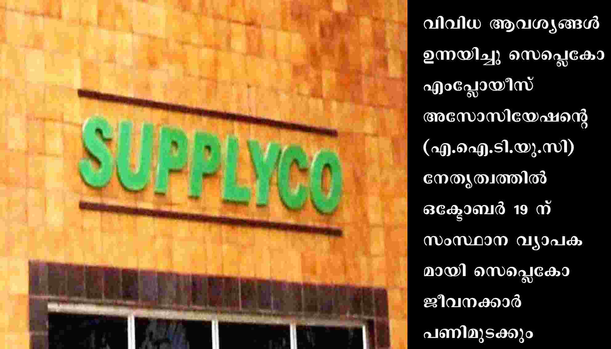 സപ്ലൈകോ ജീവനക്കാര് ഒക്ടോബർ 19 ന് പണിമുടക്കും
