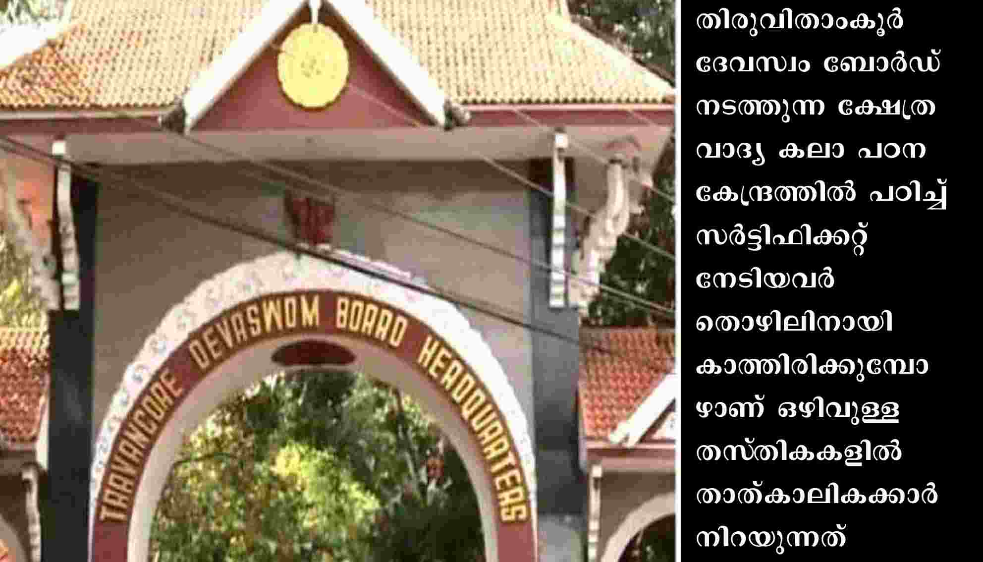 ഒഴിവുകളുണ്ടായിട്ടും റിക്രൂട്ട്മെന്റ് ബോർഡിനെ അറിയിക്കാതെ തിരുവിതാംകൂർ ദേവസ്വം ബോർഡ്
