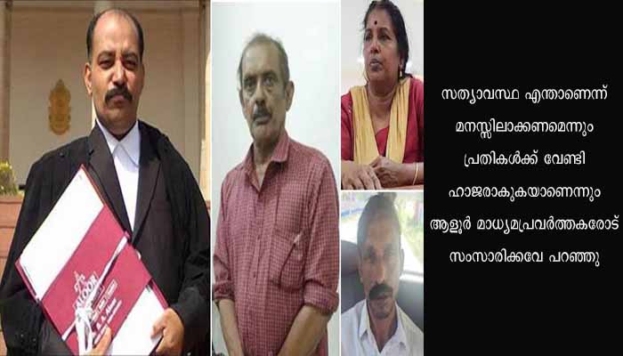 എറണാകുളം: ഇലന്തൂരിലെ ഇരട്ട നരബലിയിലെ പ്രതികളായ ഭഗവൽ സിഗ്, ലൈല, ഷാഫി എന്നിവർക്ക് വേണ്ടി ഹാജരാകുമെന്ന് അഡ്വക്കേറ്റ് ബി എ ആളൂർ. സത്യാവസ്ഥ എന്താണെന്ന് മനസ്സിലാക്കണമെന്നും പ്രതികൾക്ക് വേണ്ടി ഹാജരാകുകയാണെന്നും ആളൂർ മാധ്യമപ്രവർത്തകരോട് സംസാരിക്കവേ പറഞ്ഞു. ആദ്യം രണ്ട് പേർക്ക് വേണ്ടി ഹാജരാകാനായിരുന്നു ഏൽപിച്ചിരുന്നതെന്നും എന്നാൽ ഇപ്പോൾ മൂന്ന് പ്രതികൾക്കും വേണ്ടിയാണ് ഹാജരാകുന്നതെന്നും ആളൂർ വ്യക്തമാക്കി.